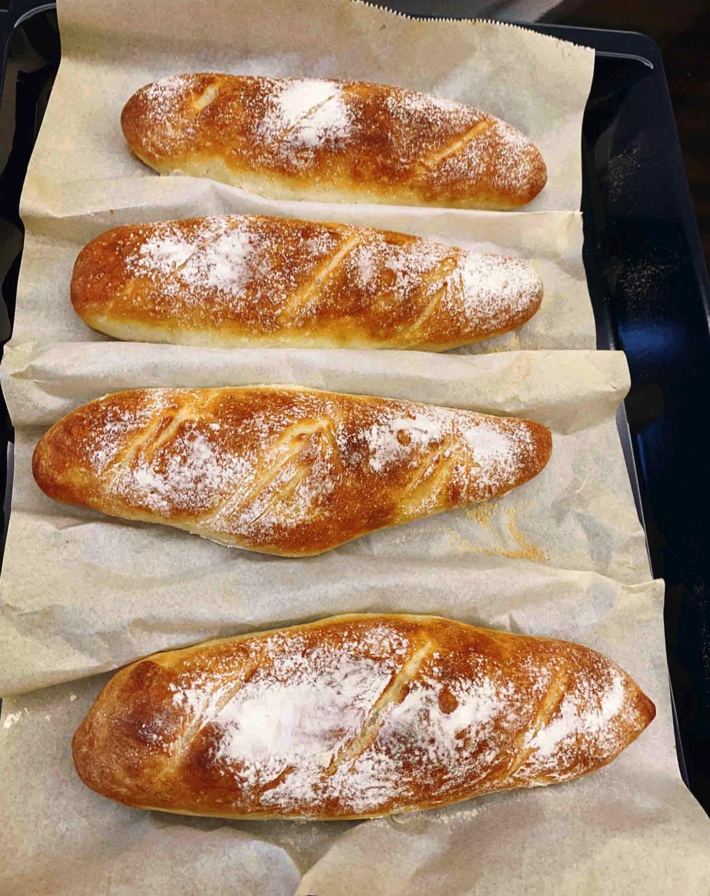 我自己做的四個麪包,合到一個成本才一塊多錢。但要在烘焙店裏買的話,以下面這個店鋪爲例,一根又細又小的法棍就得18元。