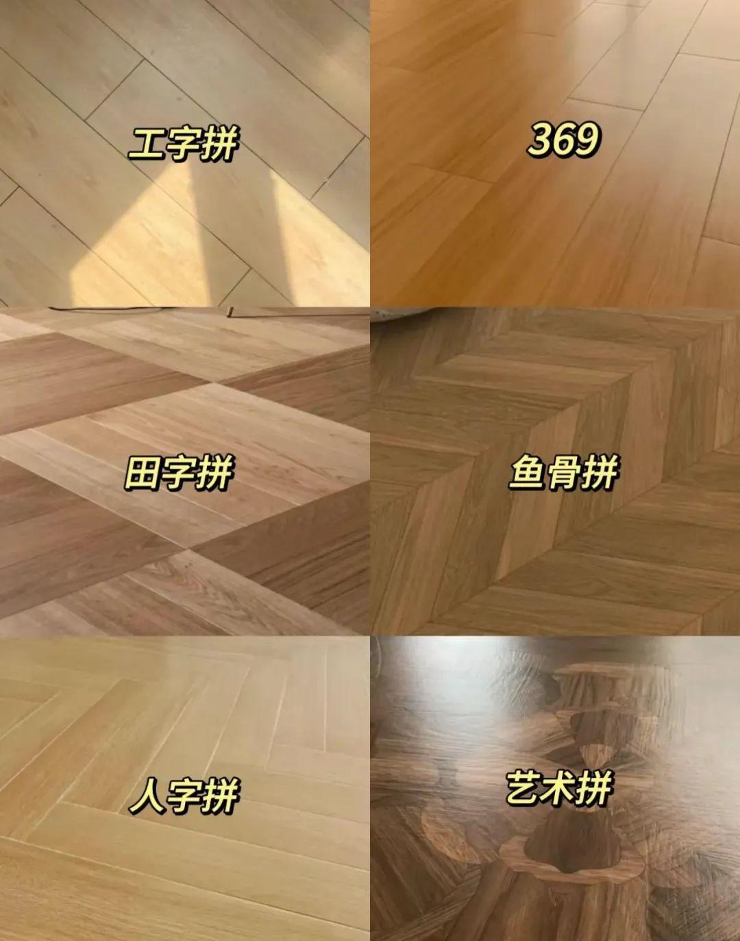 拼花地板比如常見的拼法有六種,人字形拼法、工字形拼法、田字拼法、369等等,可以根據地板花色和房屋佈局決定哪一種最適合。
