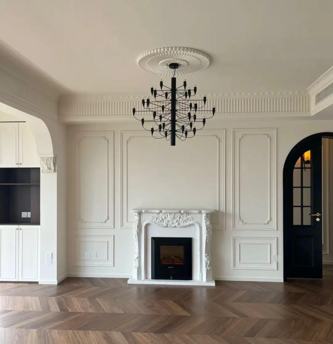 而現在石膏線條有了創新用法,客廳背景牆都能用石膏線條去裝飾,搭配法式裝修風格,性價比之神。