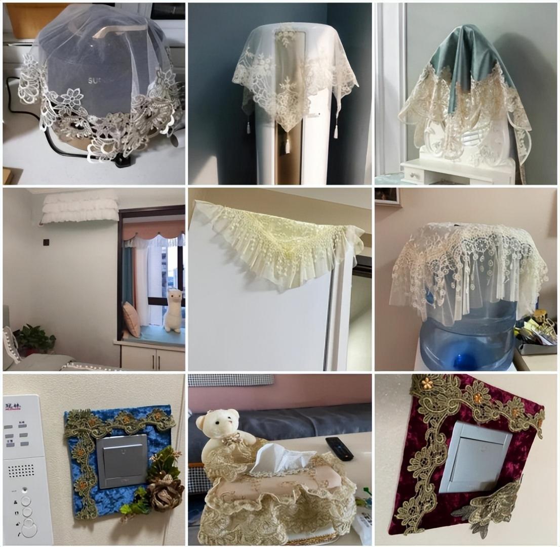 以前爲了防傢俱落灰,家裏到處都要頂一塊蕾絲布蓋頭。