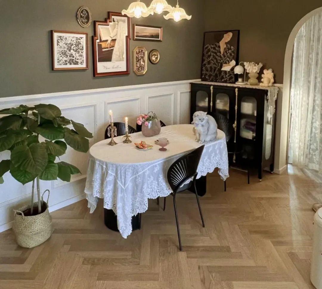 現在家裝中,也會用到蕾絲裝飾,但款式簡單卻很精緻,不顯得過時,還能提升格調。