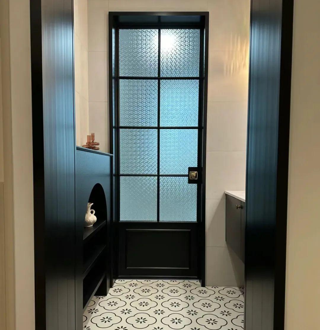 不過,所謂“流行稍縱易逝,經典永存”,現在裝修時,我們發現老鋼門窗的設計元素再次進入視野,比如這種衛生間乾溼分區,用黑色格子老鋼門窗,搭配磨砂花紋的藝術玻璃,視覺效果很絕!
