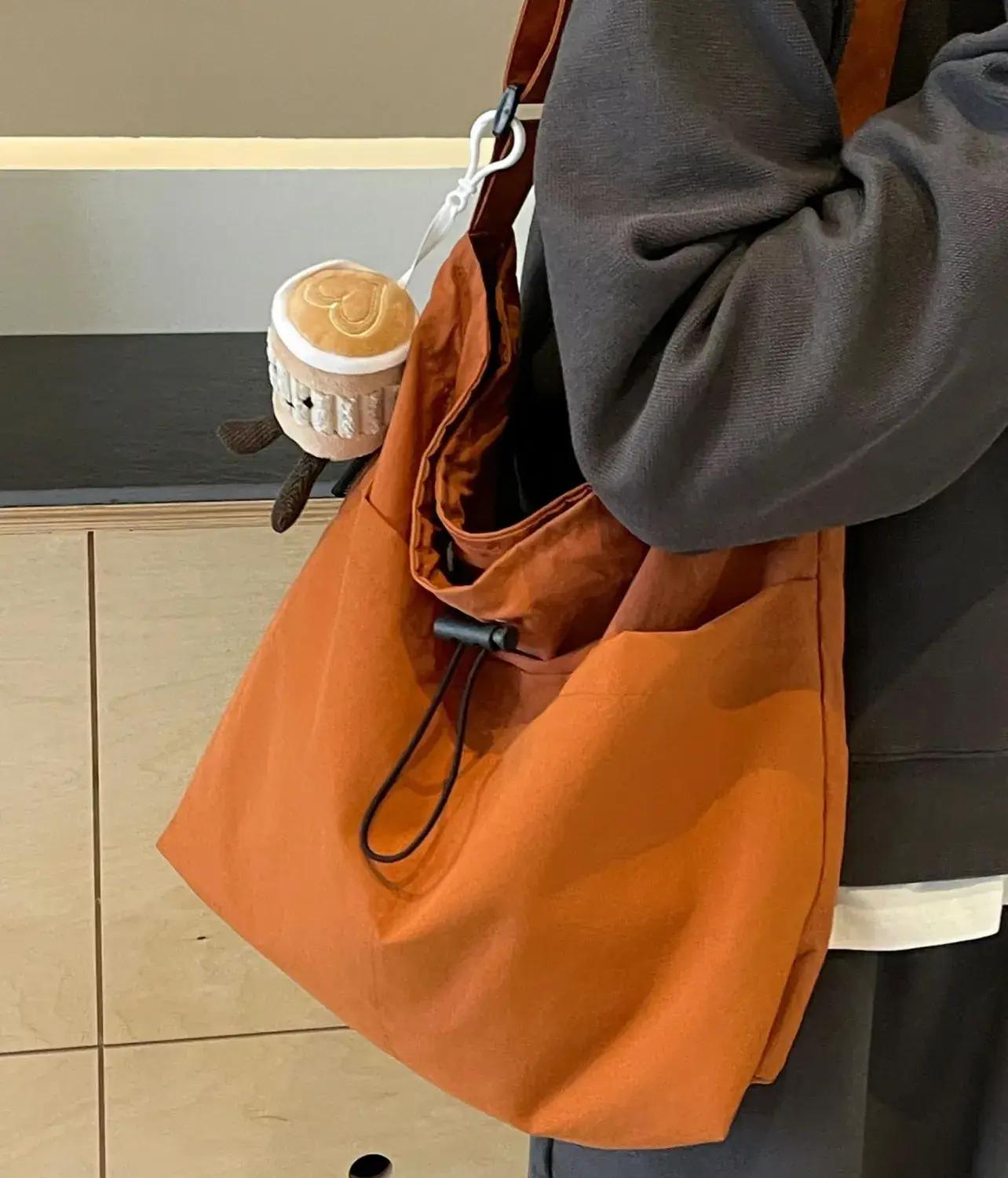 論樣式,它簡單大方,還比普通布包,多了開口抽繩設計、外兜夾層設計。