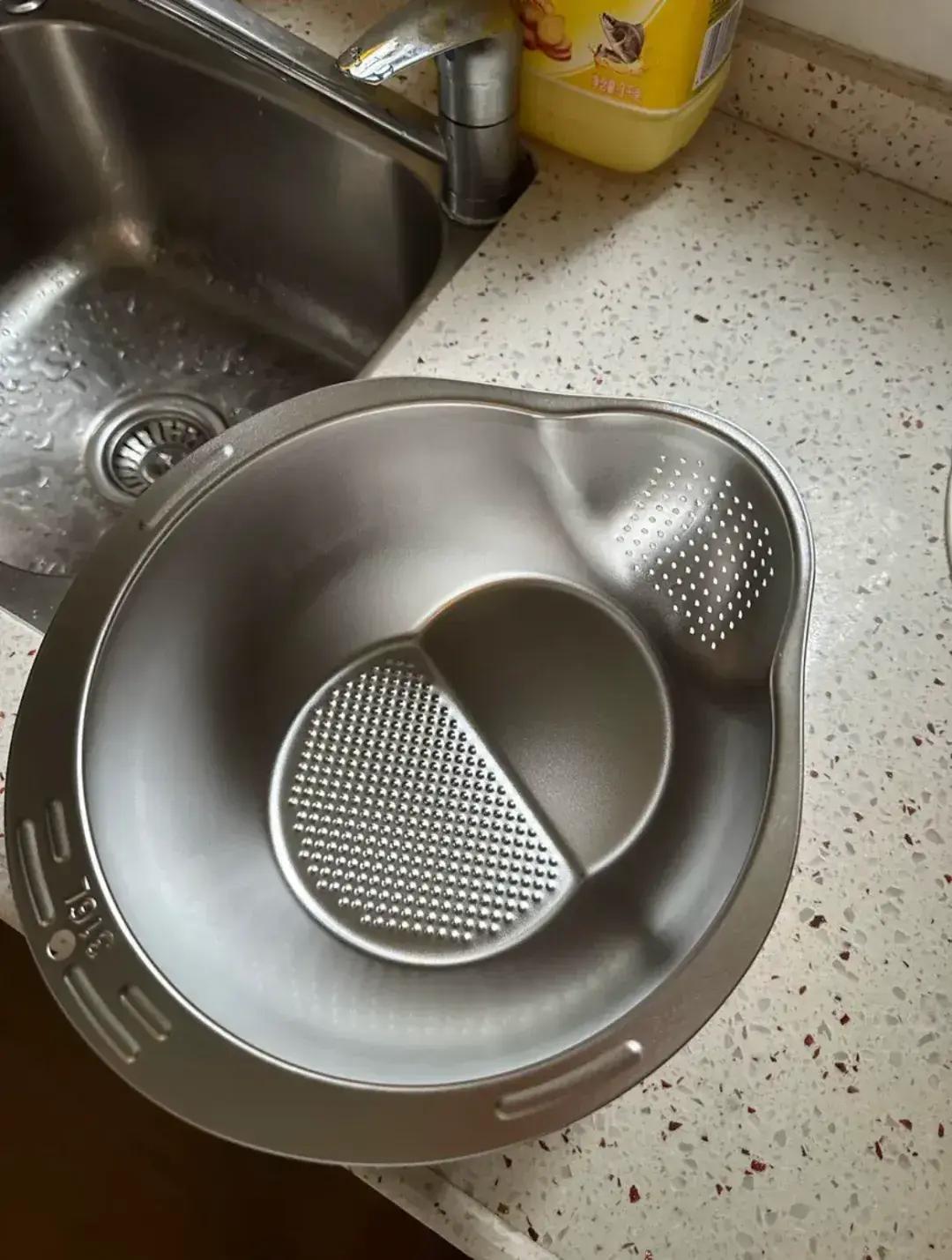 另外,我覺得它是一款因爲設計改變了生活習慣的盆,從洗菜、洗米、到瀝水,過湯,甚至盛菜、放水果,一盆即可,洗也就這一個盆的家務量,簡直不要太輕鬆。