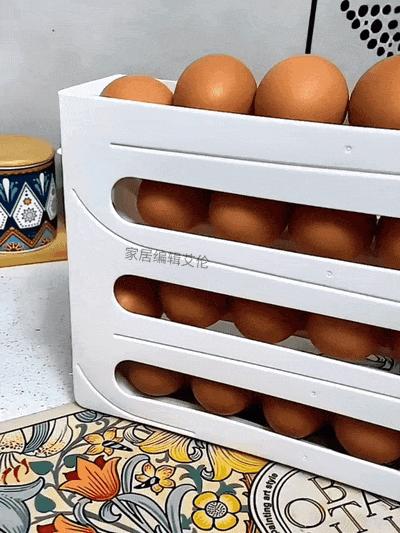 號稱節省空間而且使用順手的“滾落式雞蛋收納架”,看了網紅和商家的宣傳視頻,那叫一個絲滑,依靠重力原理,每從下面取一顆雞蛋,上面的就會自動滾落,讓人心動不已。