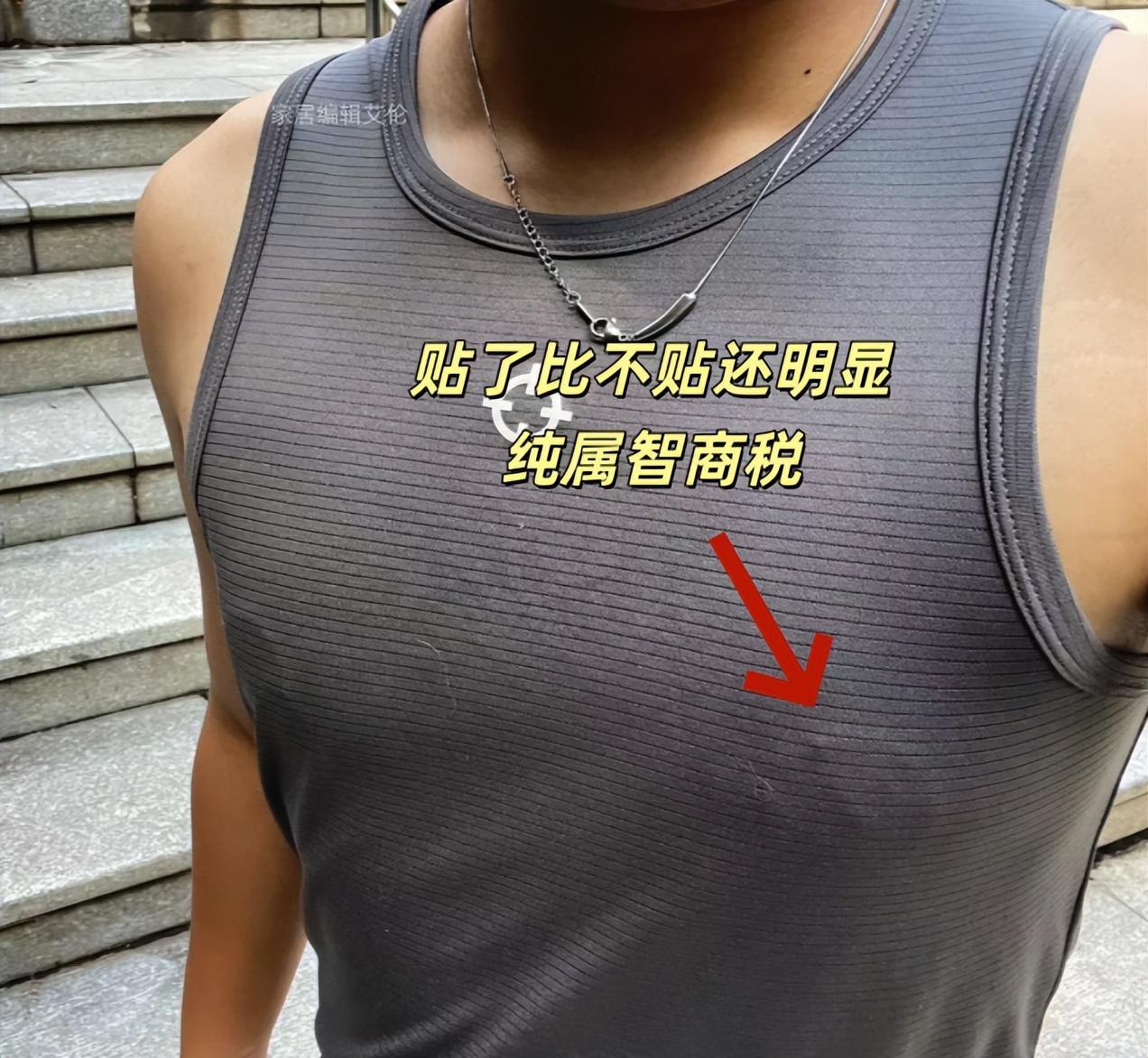 這玩意買回來本來是爲了防尷尬用的,像夏天衣服淡薄,有一些運動衣物比較貼身,再加出汗,就會顯得很尷尬,而據說貼了這個就可以遮住。