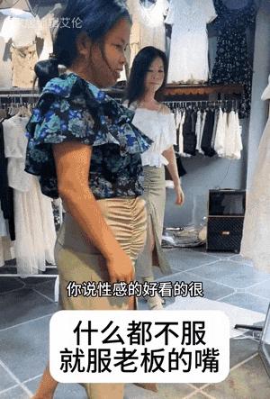 ▲圖源網絡段子,老闆娘爲了賣貨一個勁誇顧客穿得好看