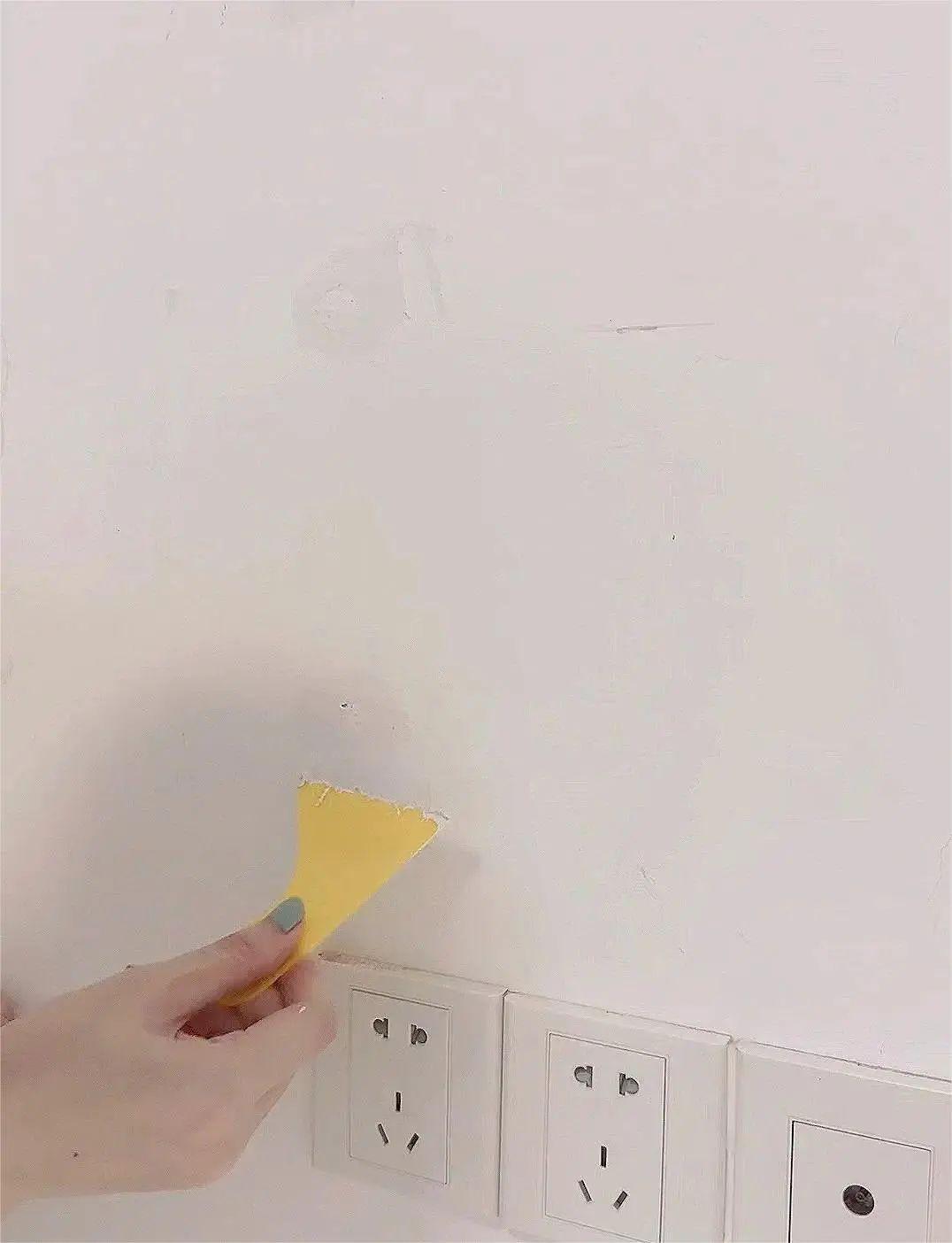 第一步先把補牆膏擠在刮板上,慢慢的補,不能急,不然可能手抖就補得不好看了