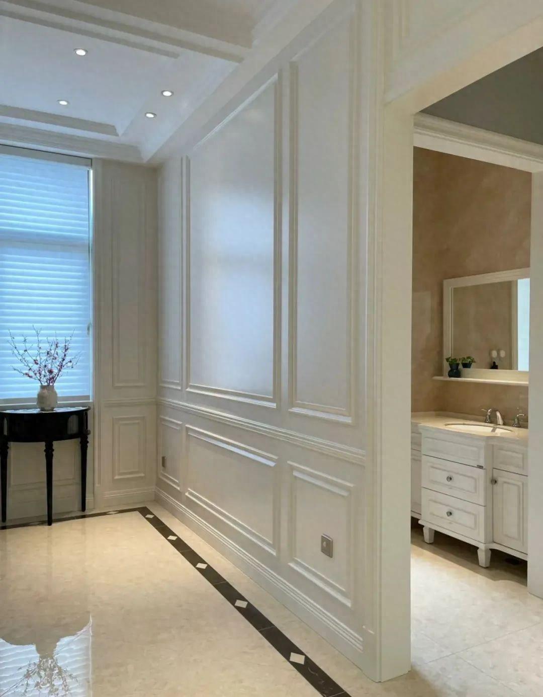 護牆板作爲背景牆,裝飾整屋牆面的效果還是不錯的,能讓整個空間顯得華麗且高級,這也是它讓人印象最爲深刻的優勢,現在還有不少人會用牆裙(半高護牆板)裝飾牀頭。