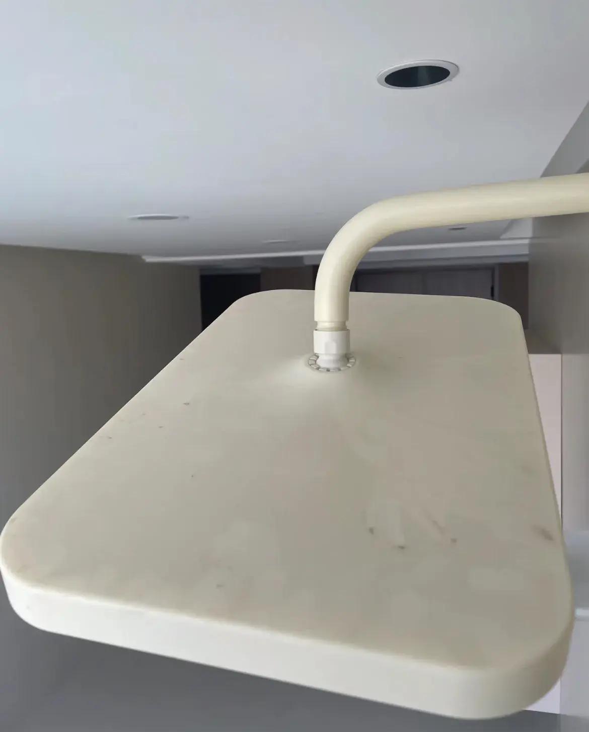 54、花灑杆子、水龍頭是明着髒,沒什麼猶豫,只有檸檬酸能輕鬆恢復鋥亮;花灑頂上是隱蔽的角落,搬個凳子,才知道灰塵厚的能摳掉;