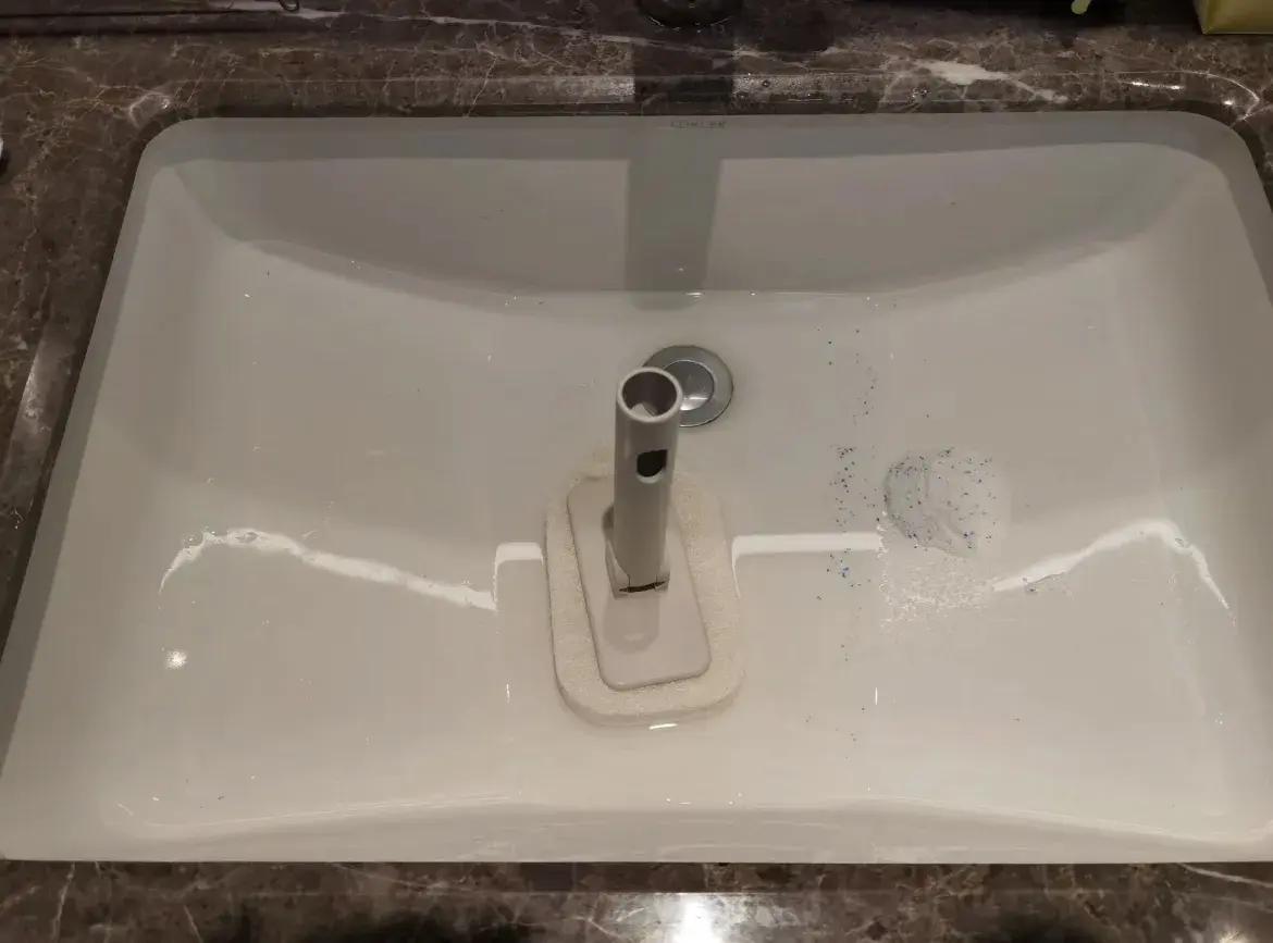 46、面盆、水龍頭,洗完可以跟新的一樣乾淨,不要用光滑的洗滌劑,洗衣粉半乾搓效果最好,肥皂、香皂配半乾抹布次之;