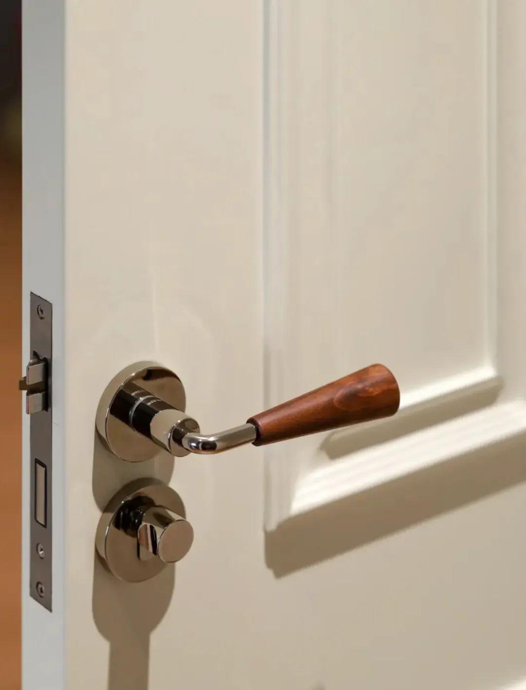第二把是少見的木質把手門鎖,質感溫暖,復古樣式,很耐看。