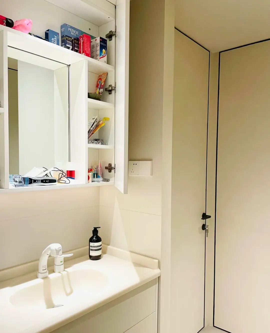 其實,設計師有更好的方案解決:第一個最推薦,可以直接把鏡子裝在浴室吊櫃內部。只有打開櫃子時,才能看到鏡子。