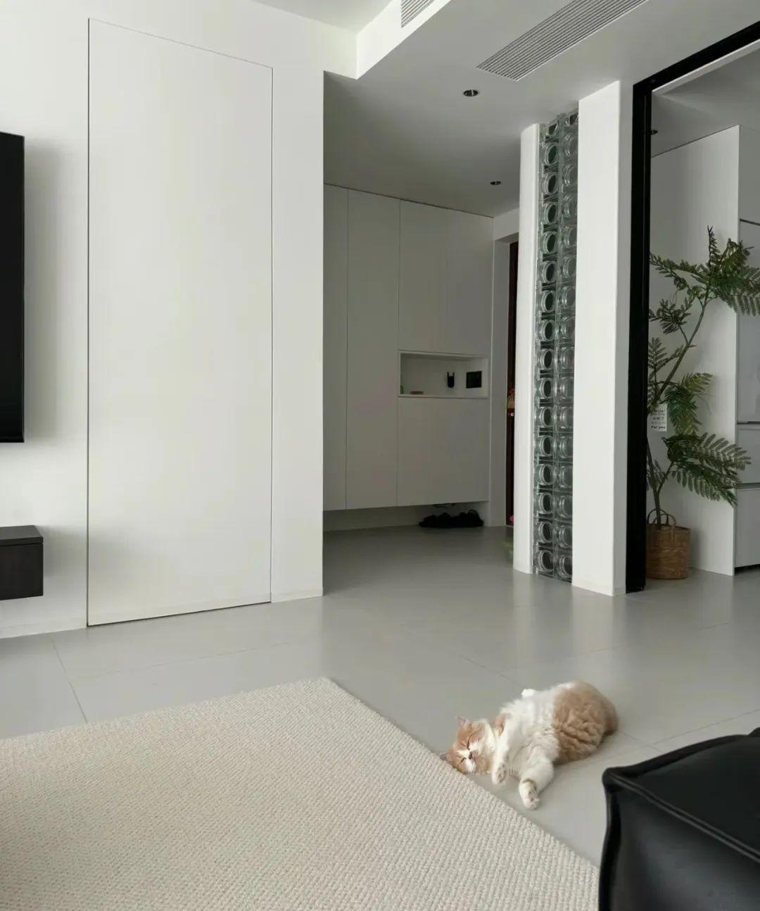 確實漂亮,保留了電視背景牆的統一視覺感,同一色系空間上顯大,也不影響進出。