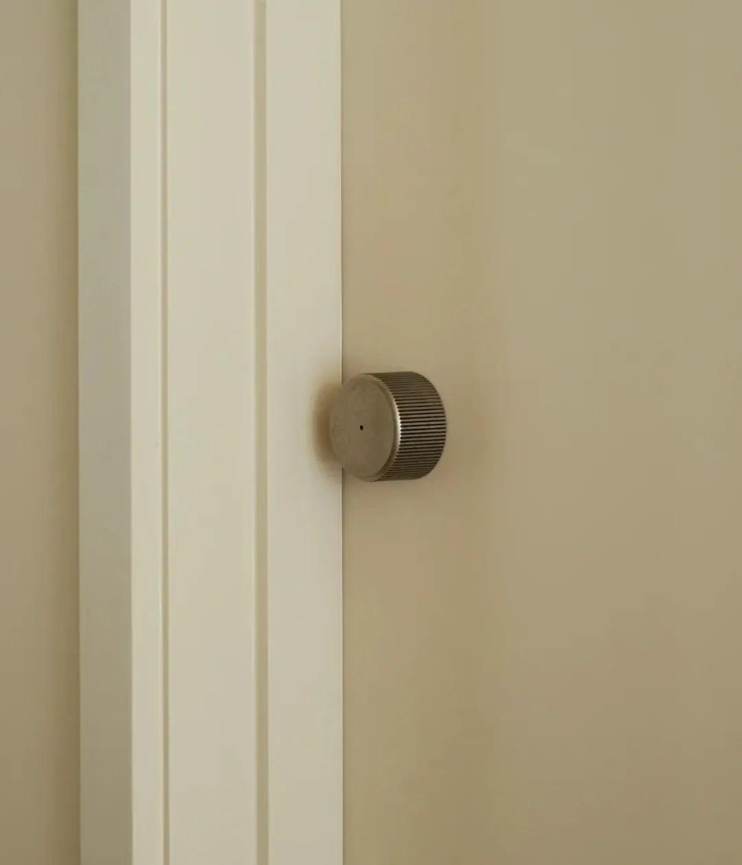 第四種球形門鎖,打開時要旋轉羅口盤,有種解鎖寶箱的感覺~做舊古銀色顯得很高級,質感也好,極簡造型更適合搭配隱形門。