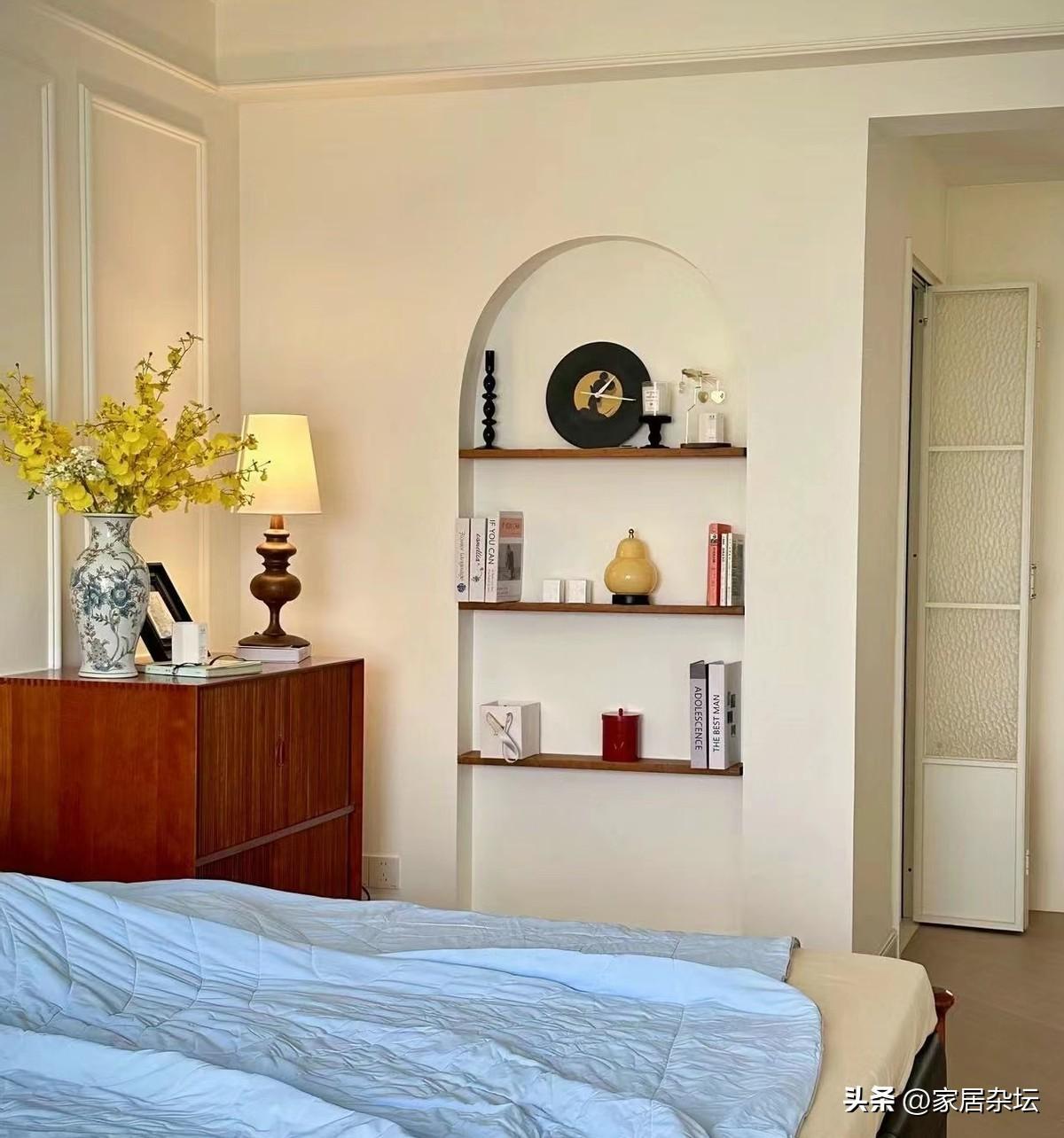 對於臥室的壁龕來說,我們可以收到臥室的一些零碎物件,也可以當牀頭櫃來使用。