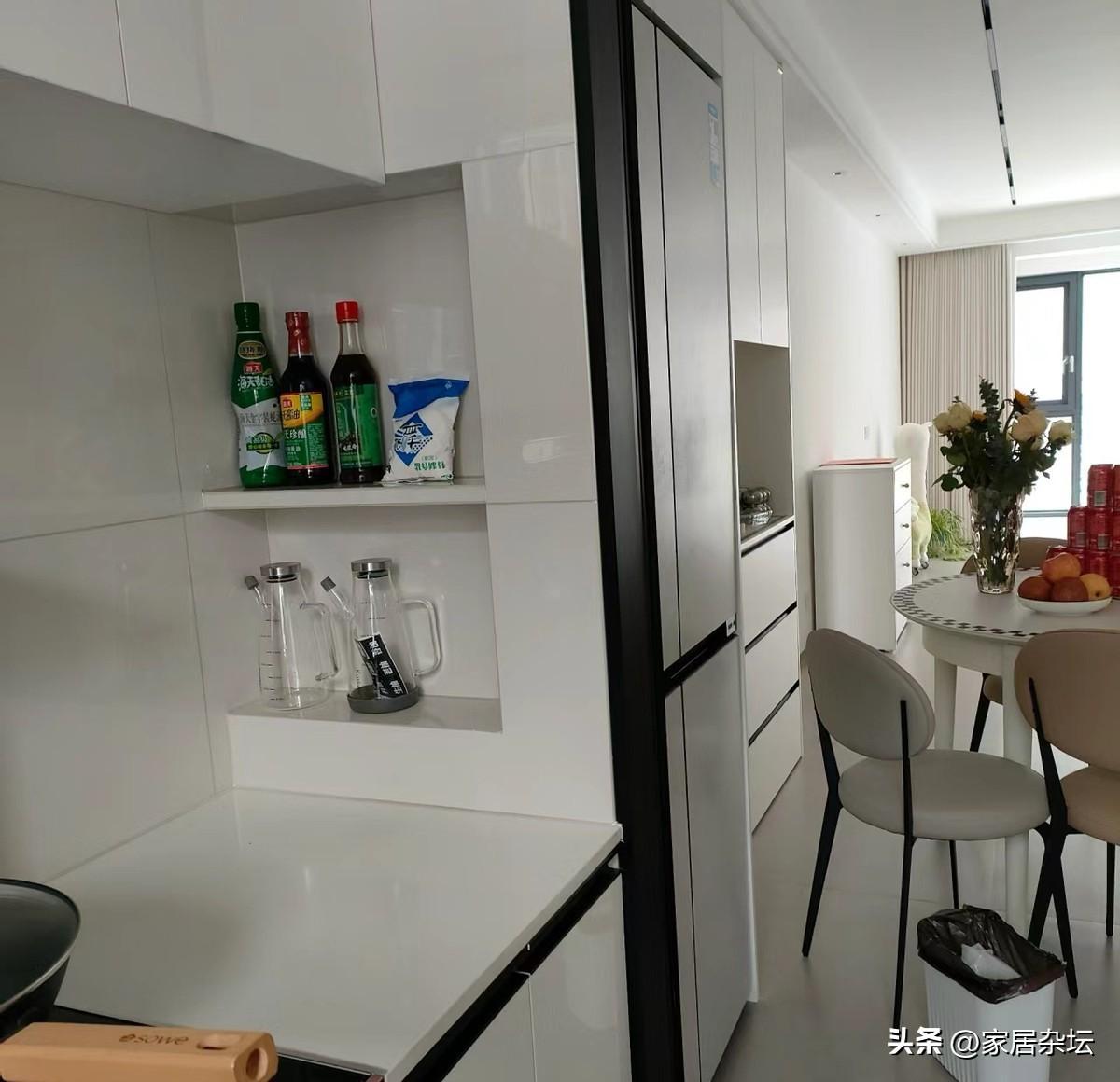 廚房這個壁龕,真的太有用了。建議大家,在竈臺的旁邊設計一個壁龕,這樣我們的油鹽醬醋,各種調料,都可以放進去,用着也更方便。
