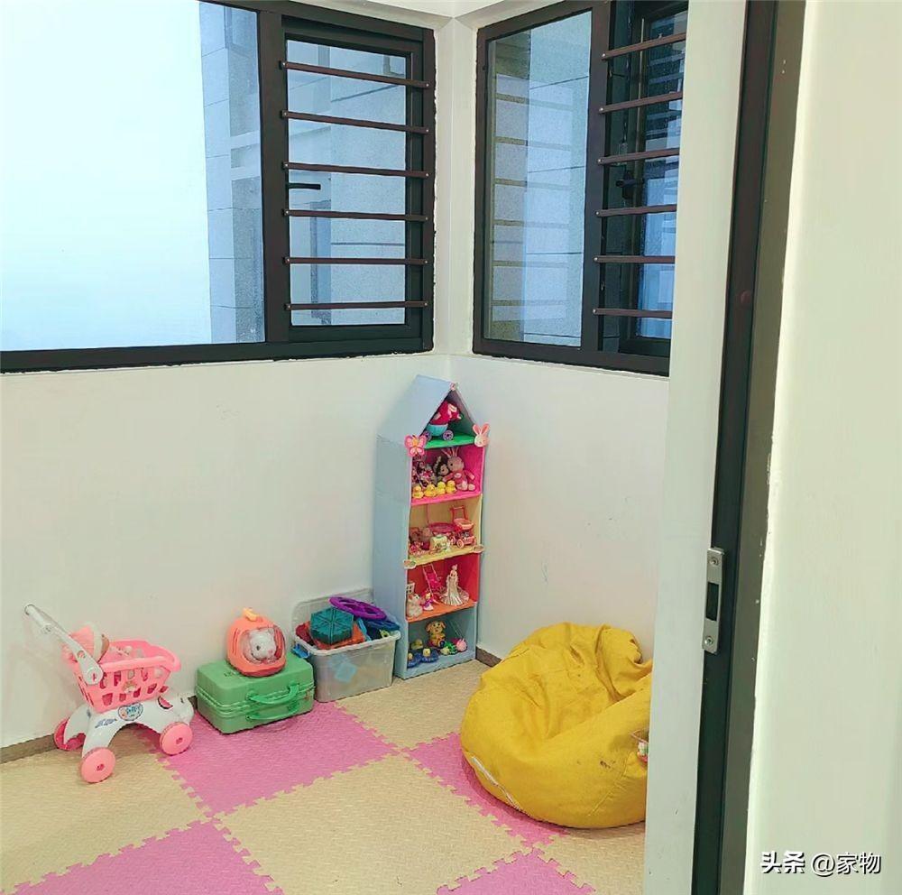 後陽臺改成的蝸居,現在鋪上了爬爬墊,雖然說面積很小,但卻足夠孩子玩耍,而且這間陽臺開的高窗,做了防護欄,也能放心讓孩子一個人在這裏玩耍,細節很貼心。