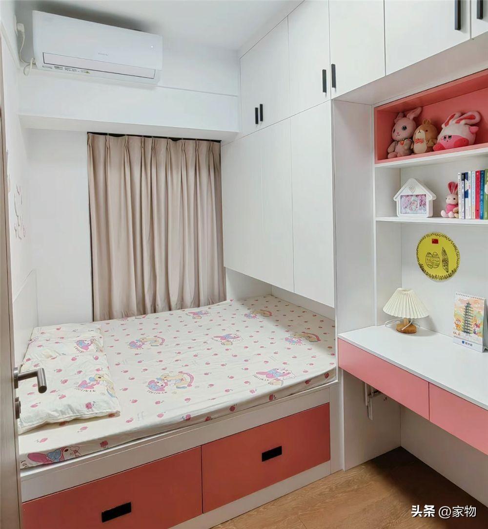 家裏有三間臥室,從戶型圖上能窺得一二,一間主臥室夫妻二人住,一間次臥室留給孩子,還有一間後陽臺改成的次臥室,可以當做臨時臥室用,目前當成孩子的遊戲室。