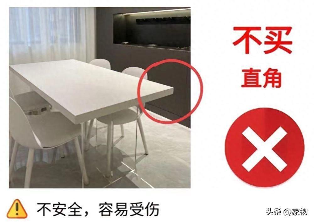 很多方形餐桌的邊角,真的是絲毫沒有去做弧形圓角處理,平日裏稍微不小心有個磕碰,就既疼又容易受傷,家裏有老人孩子,千萬留意別選這種。