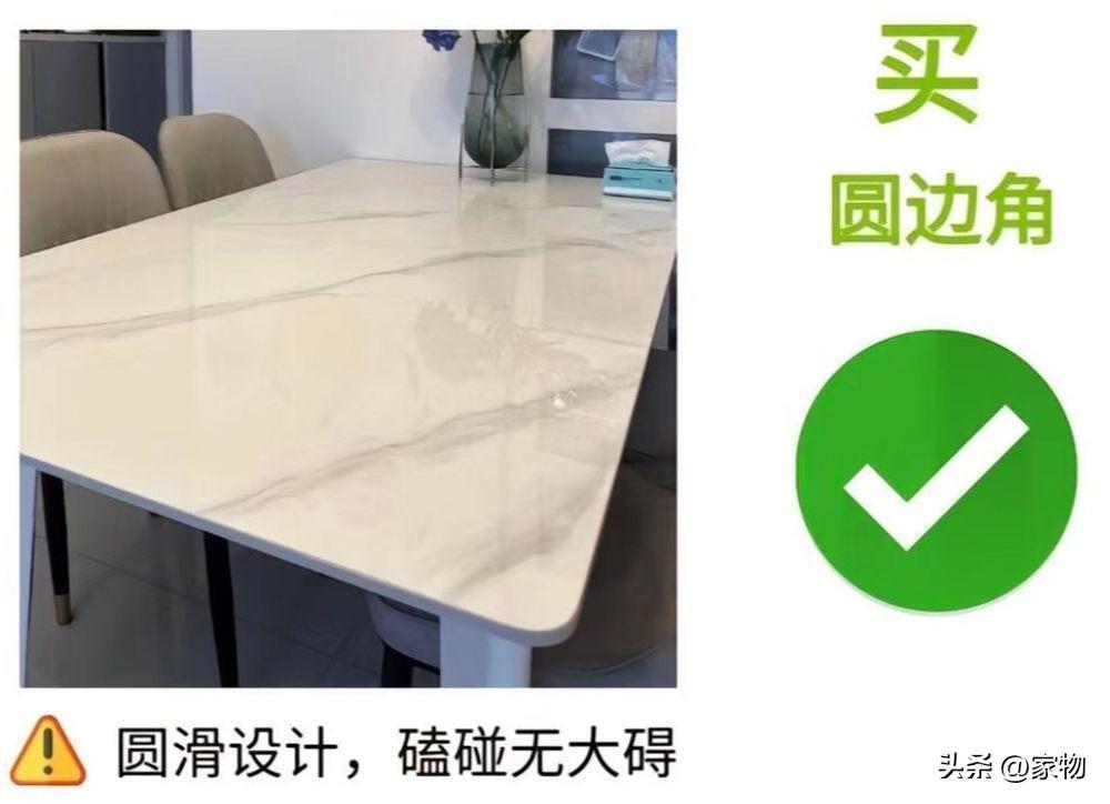 相對來說,圓角邊的餐桌更不容易磕碰受傷,而且在價格方面,其實這兩者並沒有太大差異,邊角的細節,是很多人都容易忽視的地方。