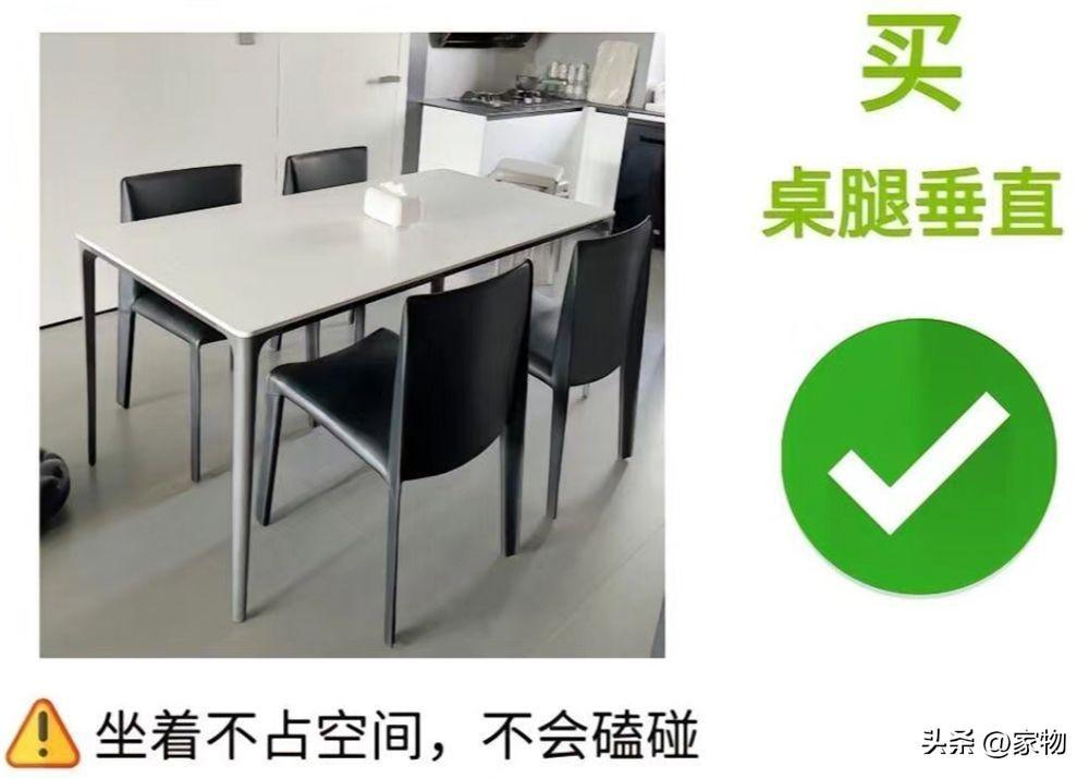 桌腿的樣式,我個人建議大家買那種垂直桌腿的,這種更節省空間的同時,坐着也不容易碰到,而且如果想要靠牆擺放的話,這種垂直桌腿的餐桌更爲合適。