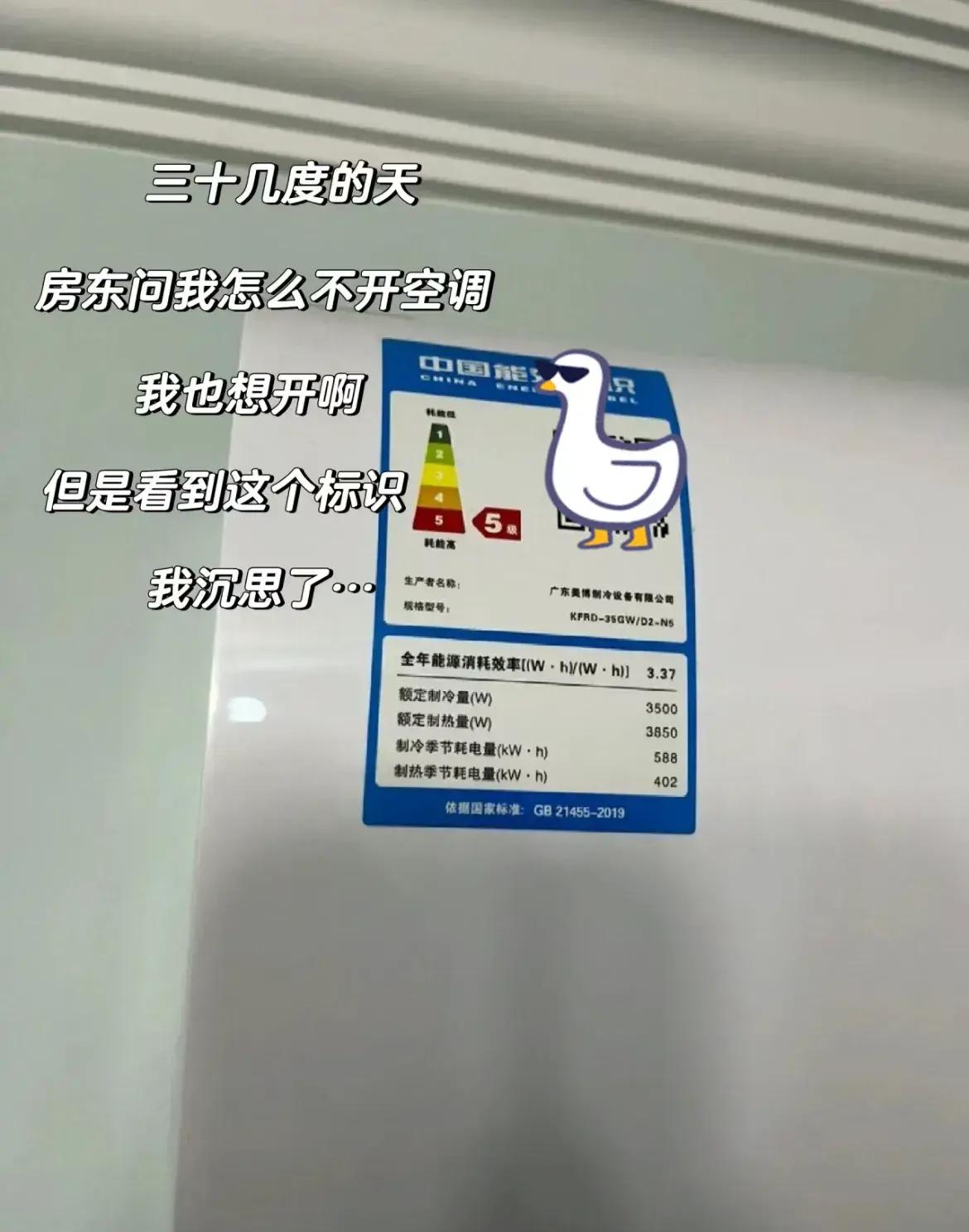 網友@喫喫就遇到了,租房時沒留意,看了網上的段子,才知道租房空調還有四五級能效的,再一抬頭看看自己每天呼呼吹的空調,瞬間陷入了沉思....