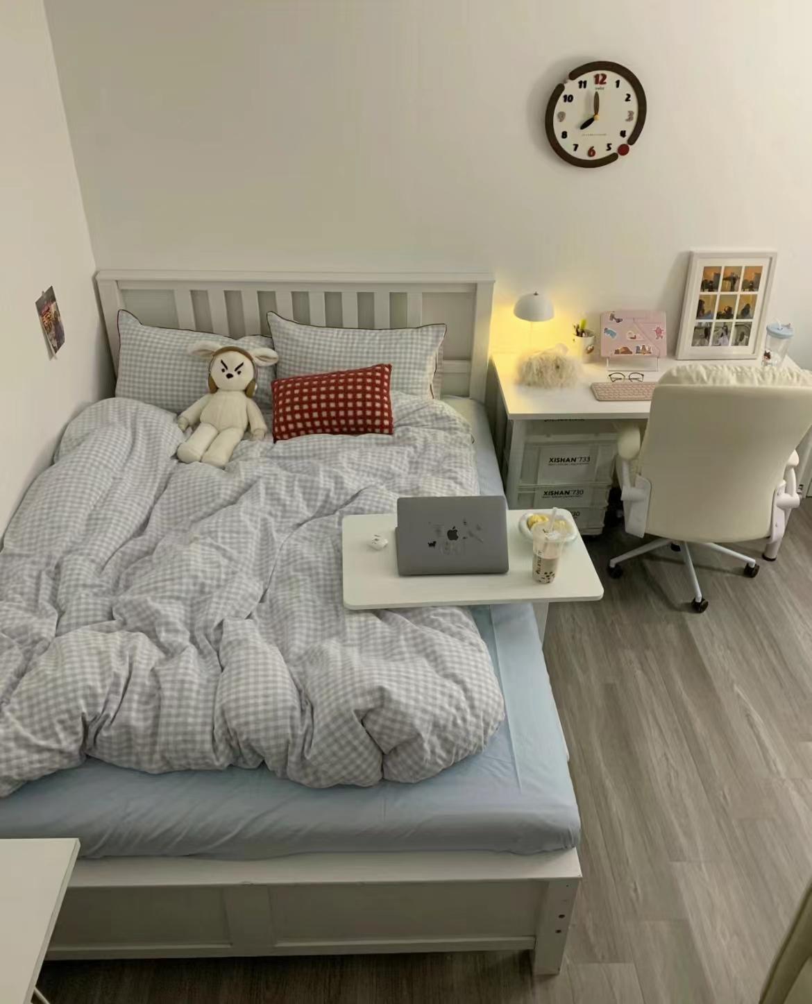 然而,搬到小窩的第一晚我失眠了:從學校帶來的被褥只夠鋪一半的牀,看着好怪,似乎也沒有什麼辦法!
