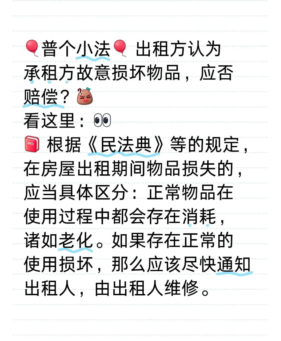這裏,順便給大家普個小法,《民法典》裏關於房屋出租期間物品損失,是如下具體劃分的。