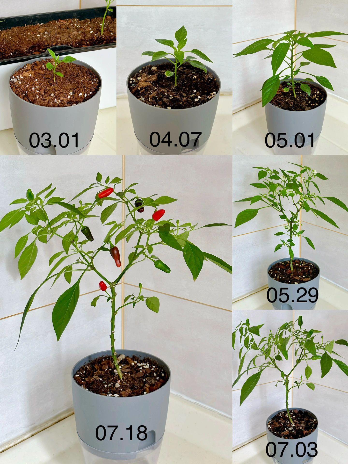 從出芽到結辣椒,足足花了4個月的時間,雖然時間漫長了一些,但這中間的成就感不言而喻。結果之後的辣椒盆栽,不僅辣椒可以食用,而且極具觀賞性。