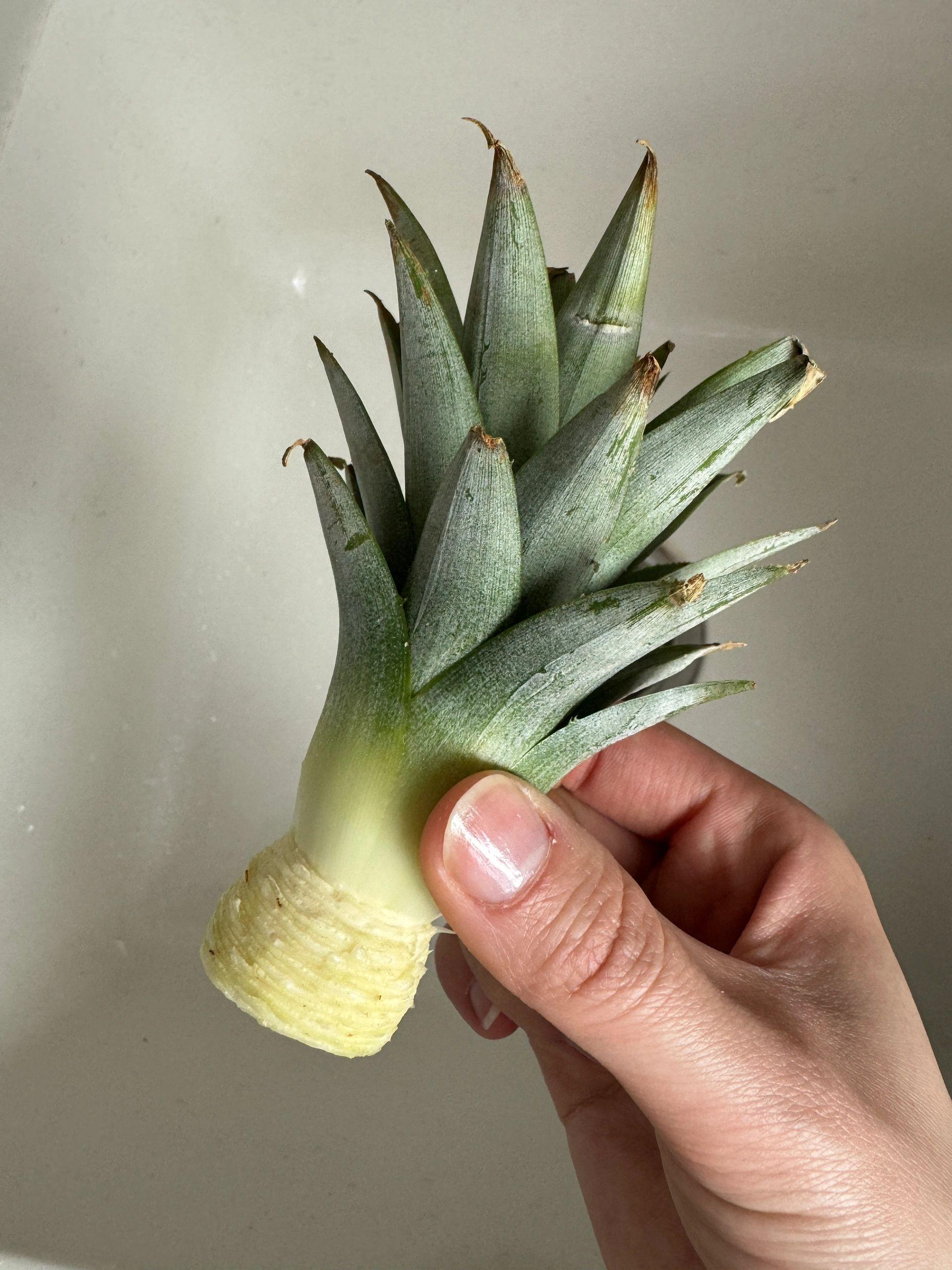 過不了多久下面就會開始生根,就得到一株菠蘿盆栽了。