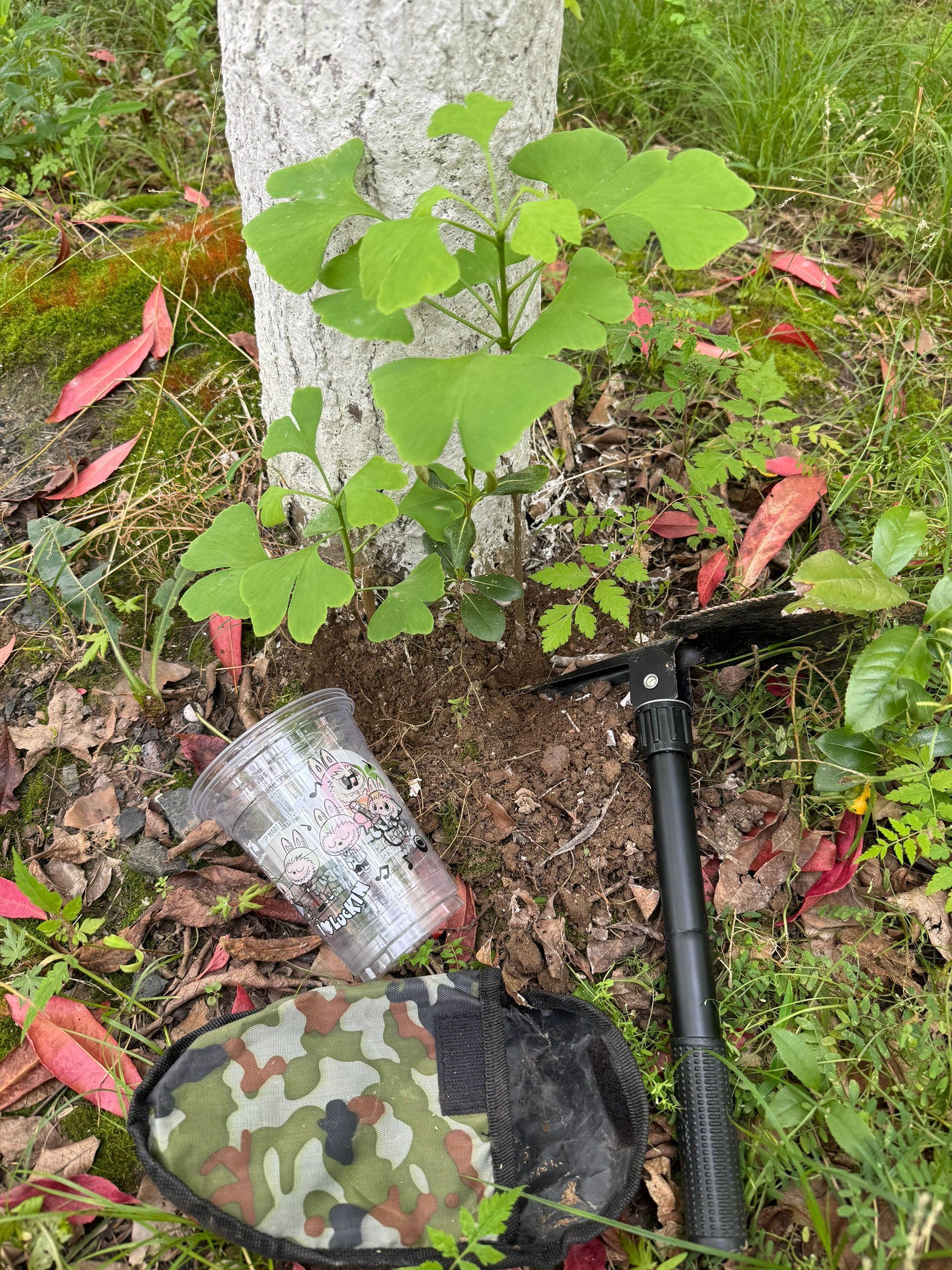▲樹底下的銀杏小苗
