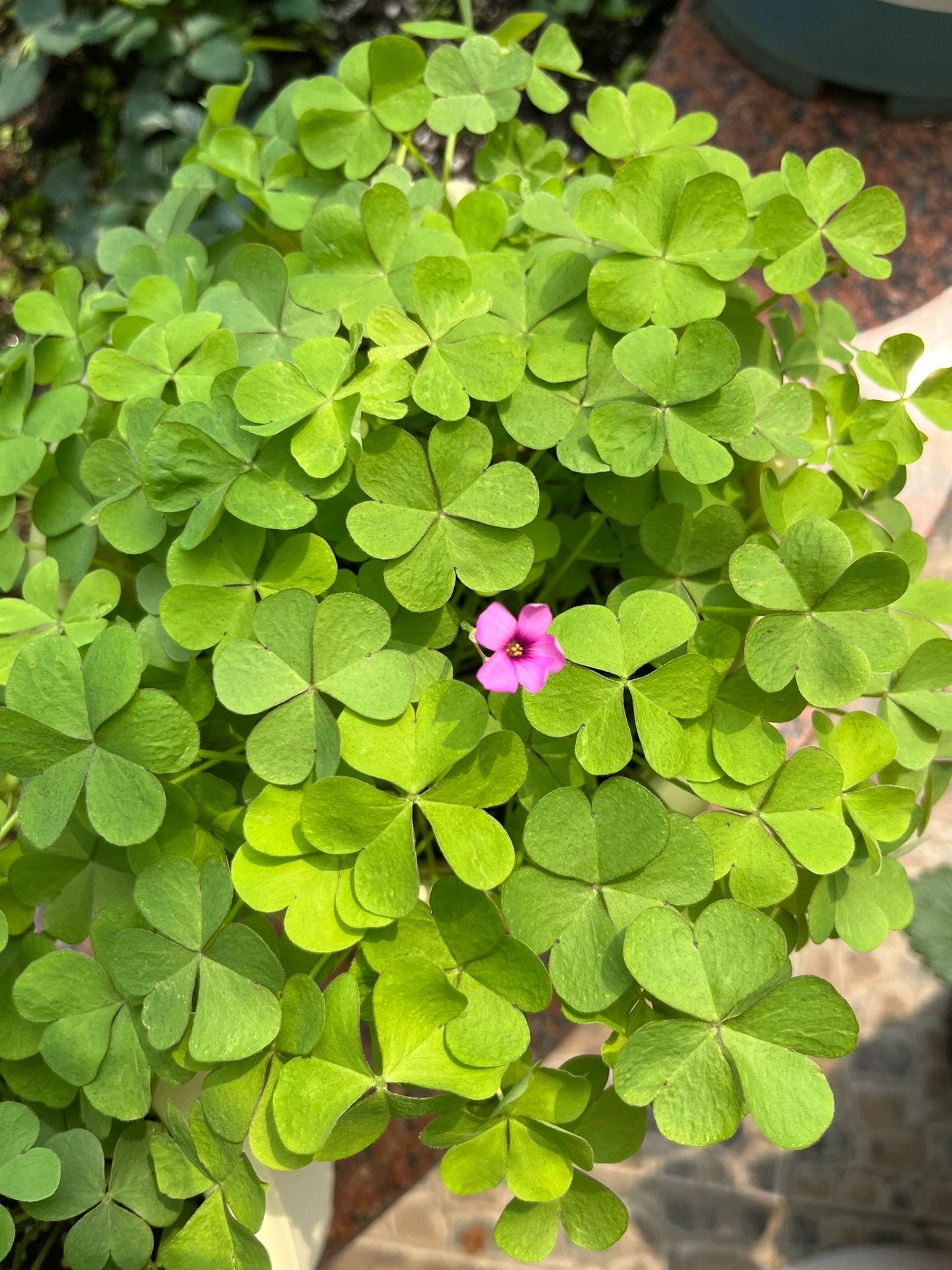 別看它是一種野草,其實把它挖回來當盆栽種在家裏也非常漂亮。可以放在家裏的陽臺上,它的葉子有點像三葉草,翠綠色特別鮮亮,十分可愛。它的花朵則是小小的玫紅色,非常惹人喜愛。