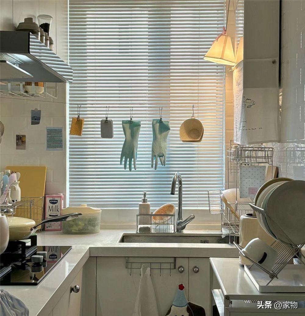 哦對了,水槽前的窗戶還安裝了百葉窗,雖然我感覺用時間長了會比較難清潔,但不得不說,是真的顯得輕盈好看,讓這間小廚房變得格外有氣質,不知道大家喜不喜歡呢?