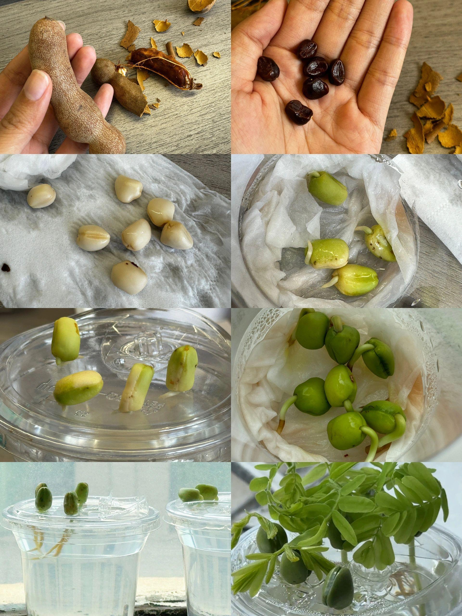 許多南方的小夥伴們都喫過酸角,酸甜可口的,一斤二三十塊錢。其實它的果核也是可以可以水培成植物的,並且顏值比榴蓮苗還要高!