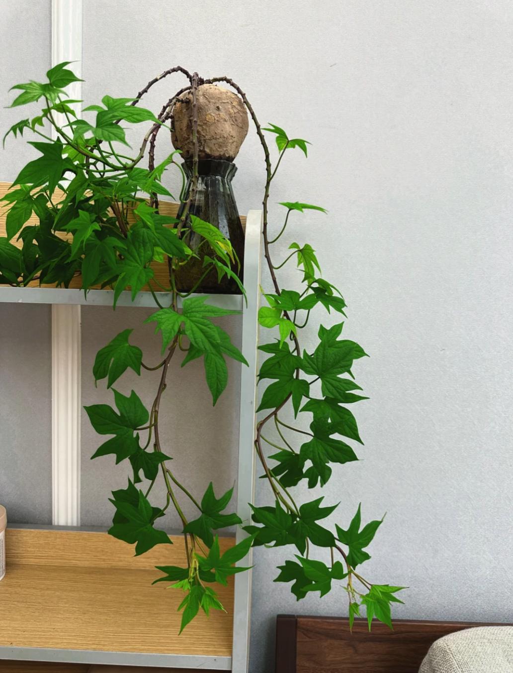 基本20天左右就能長成這樣了,搭配玻璃瓶,放在高處,葉子會慢慢垂下來,特別的有意境,櫃子一角瞬間就充滿了自然氣息。