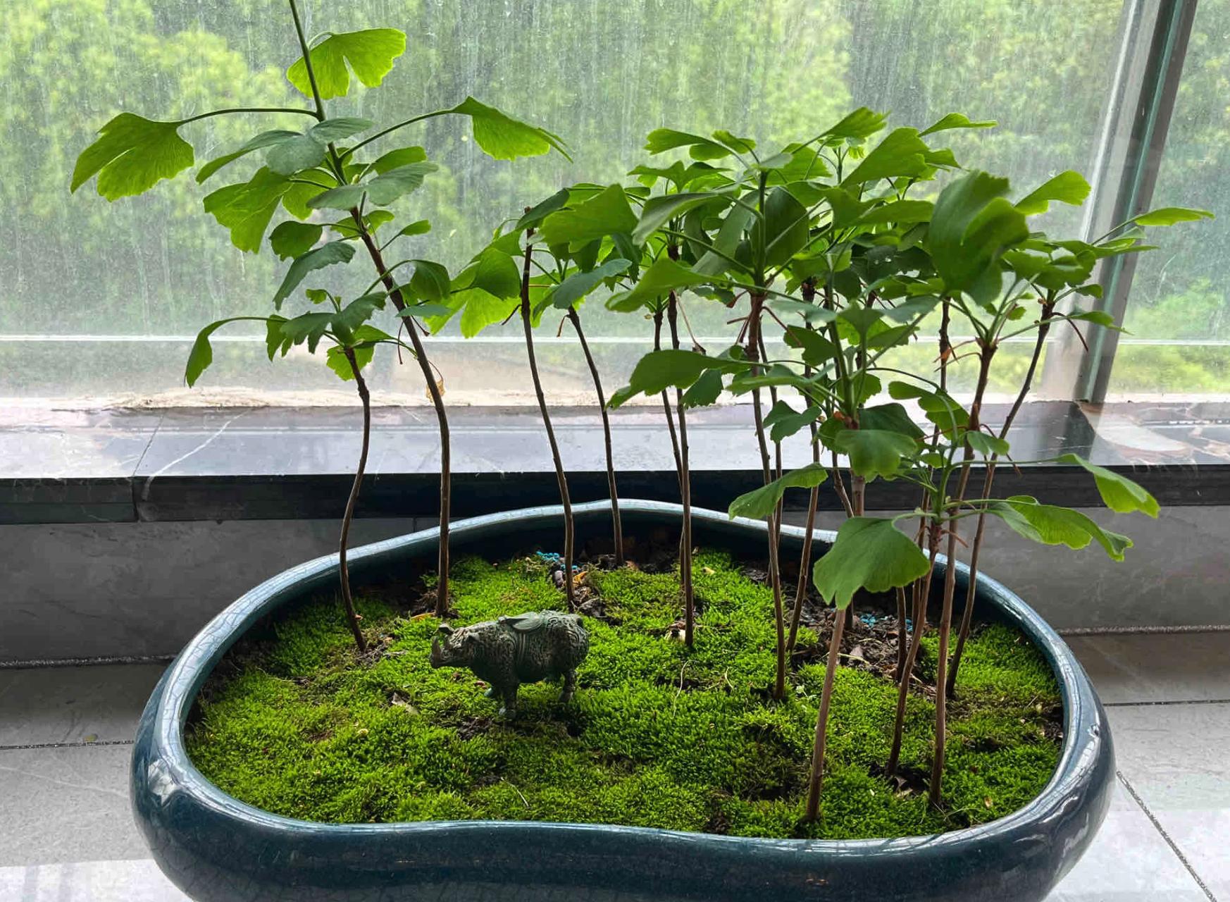 做好造型之後的銀杏盆栽,枝幹長粗了之後,真的不輸花錢買來的昂貴盆景,非常的有意境。