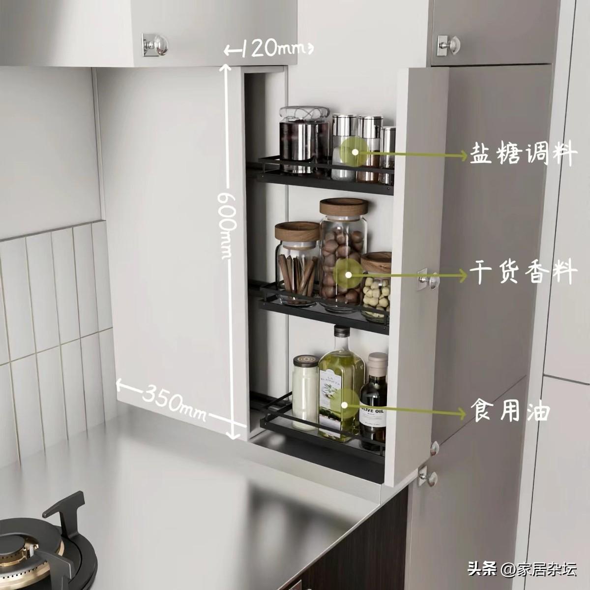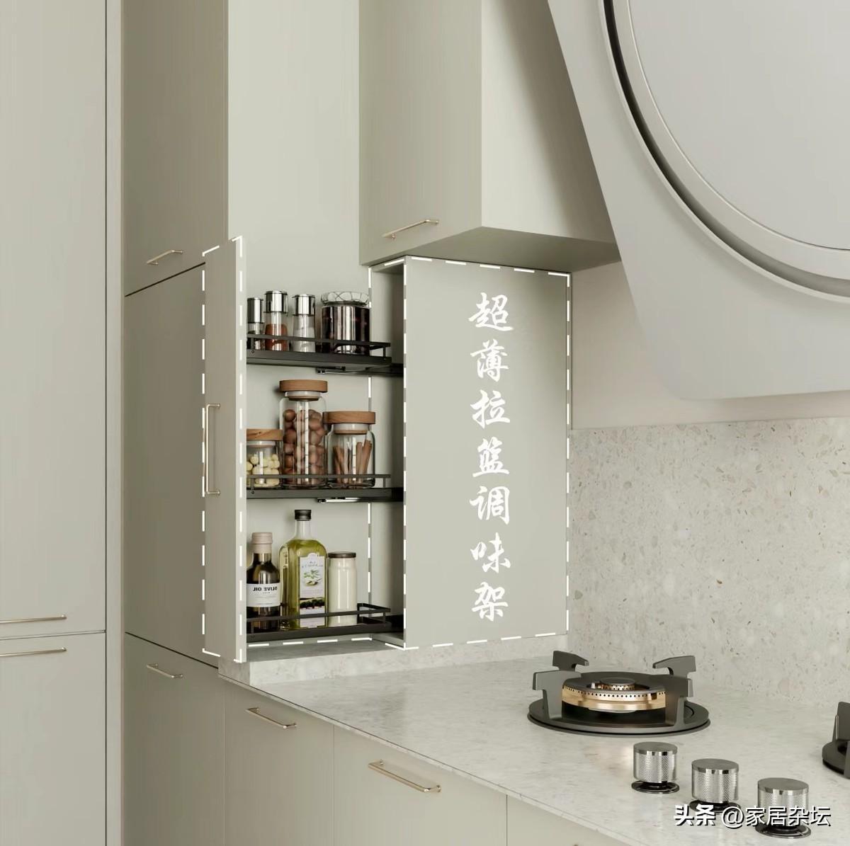 那麼,建議大家就可以考慮一下利用超薄的抽拉調料架來解決這個問題。