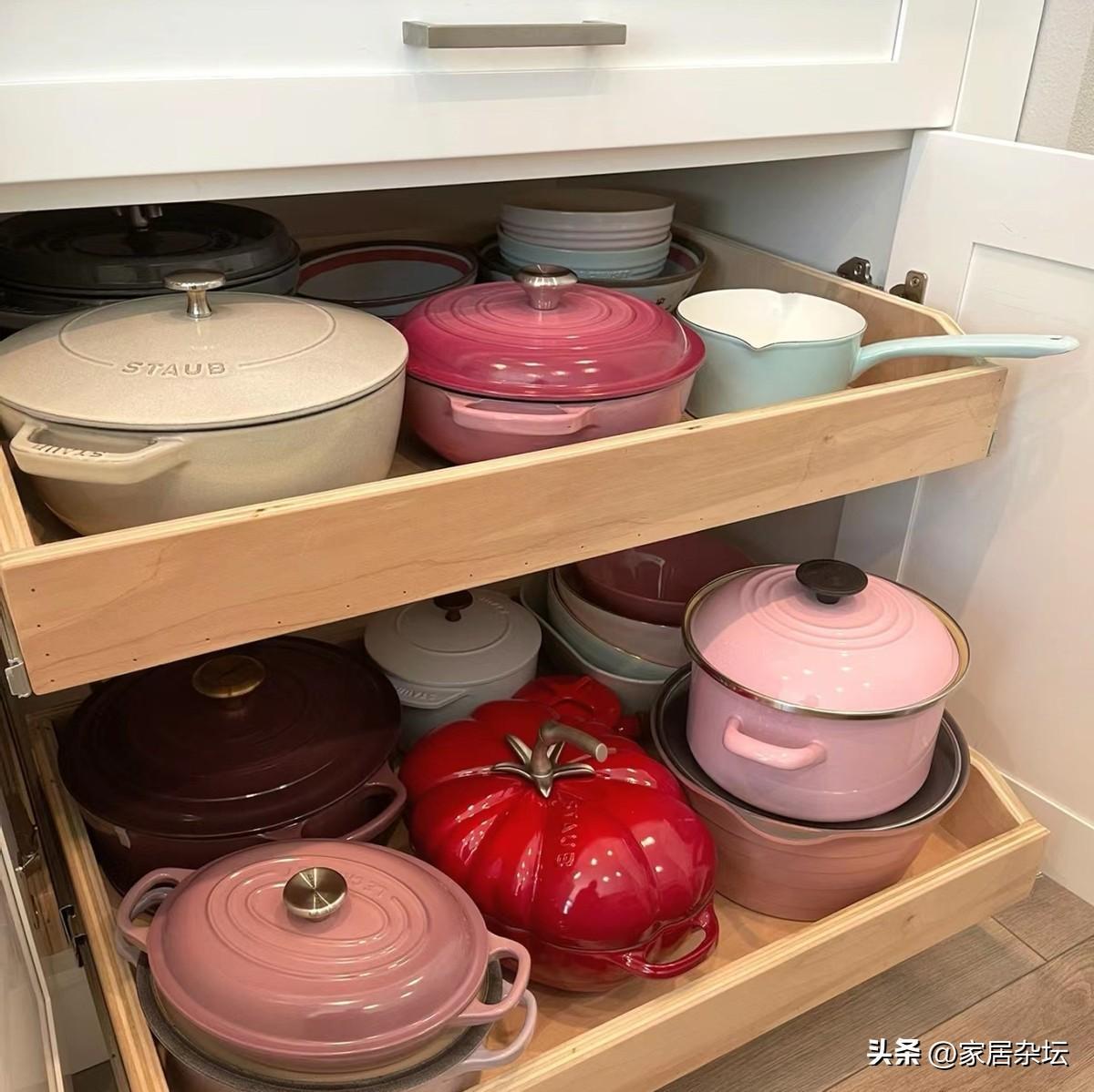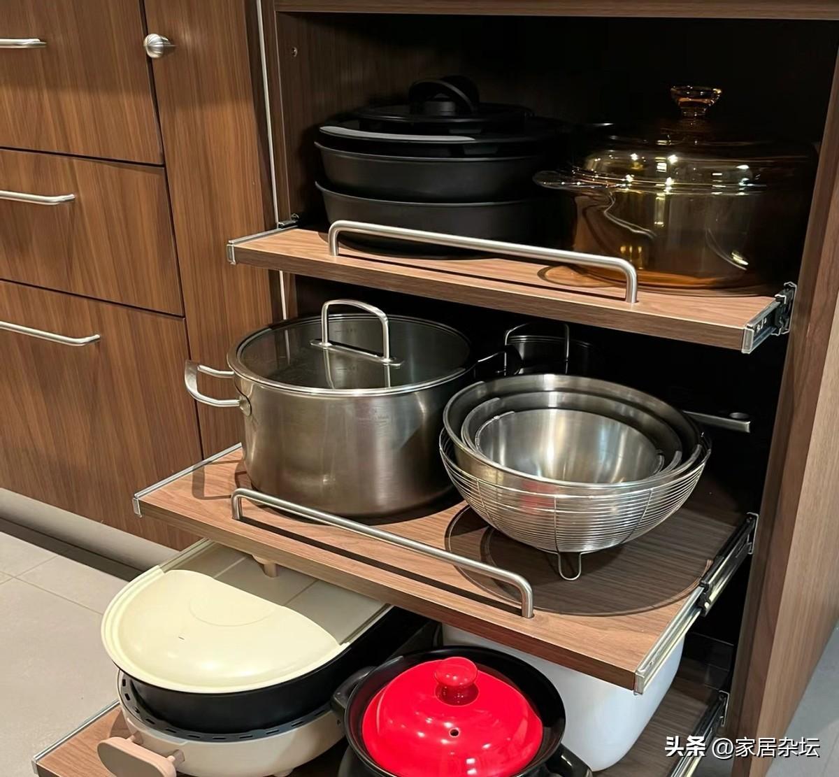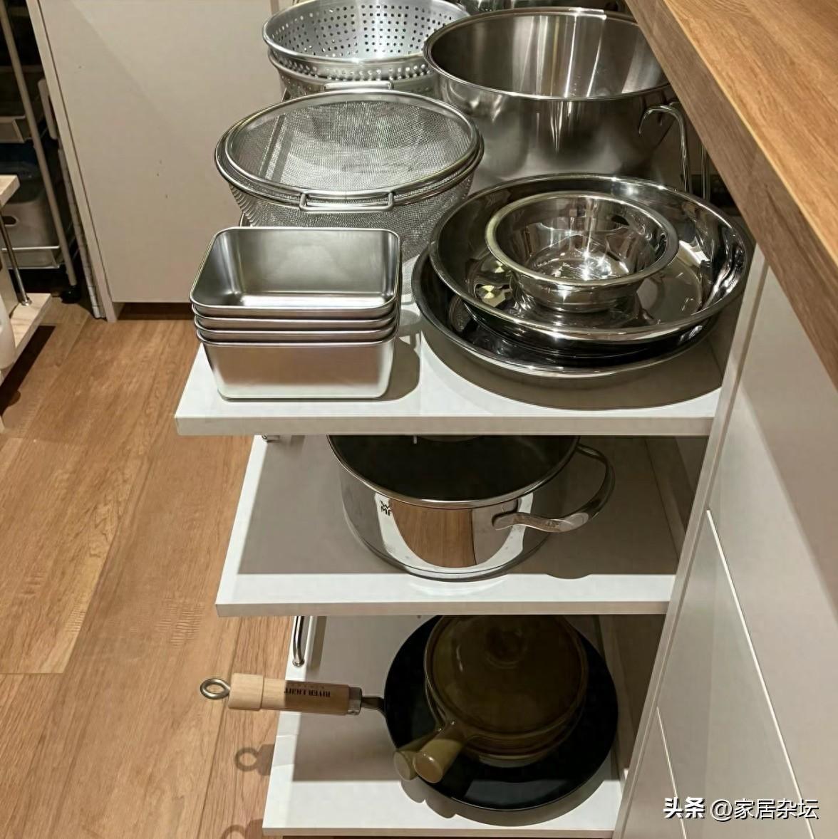 所以,個人推薦大家,儘量把櫥櫃的一個地櫃做成鍋具的收納櫃。真的可以解決我們鍋具收納的痛點,讓我們的生活更舒心。
