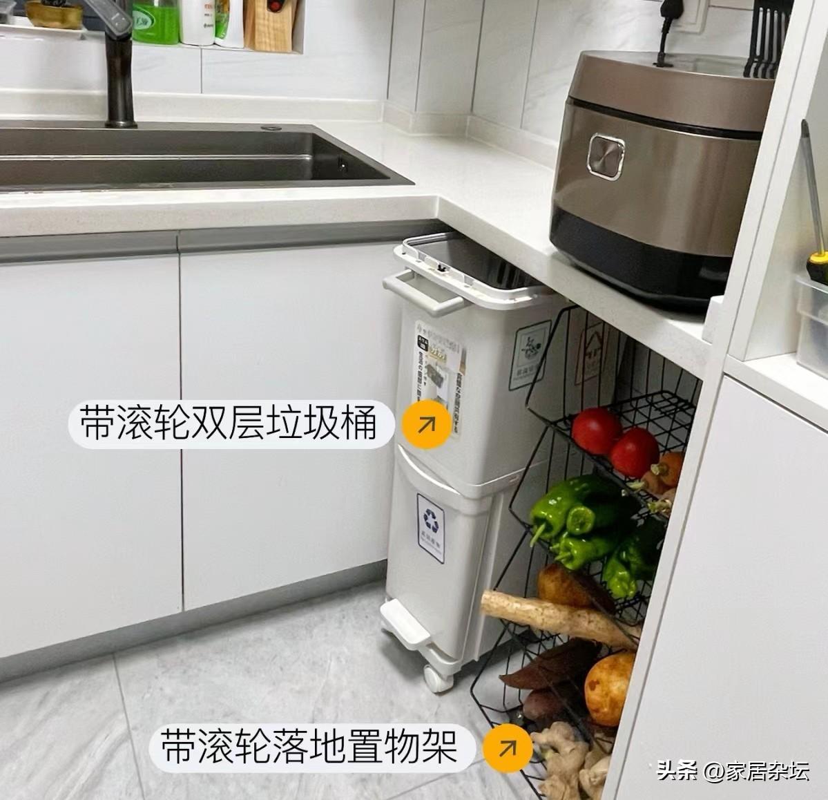 再比如我們後期廚房想把垃圾桶收藏起來,其實也可以在這個留空的位置來進行。