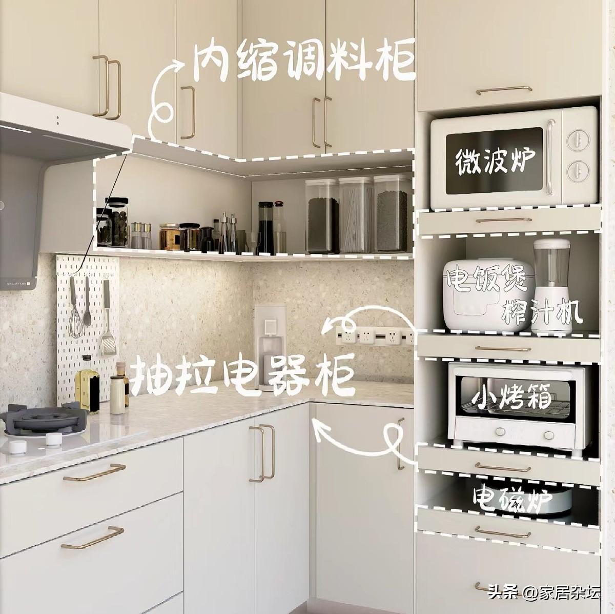 所以說,廚房地櫃儘量不要做滿,而是做出留空設計,你會發現,給以後的選擇帶來了更多的餘地。