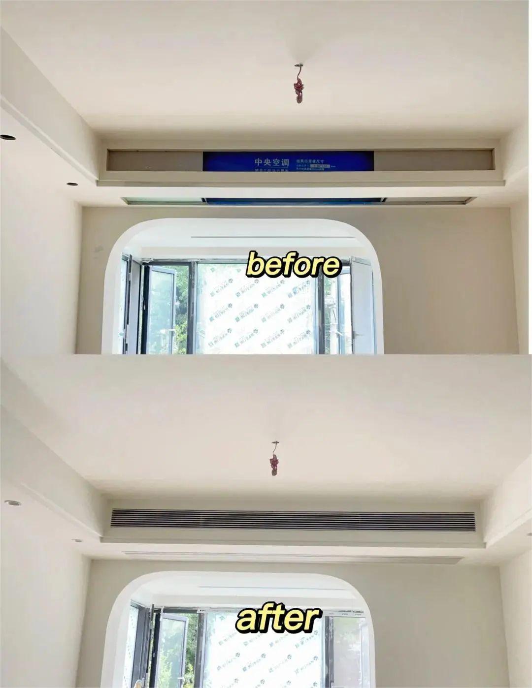 正常風管機的出風口只有1-1.3米,對比牆寬,很不協調。爲了更大氣美觀,一般會選擇在木工階段安排延長空調出風口。