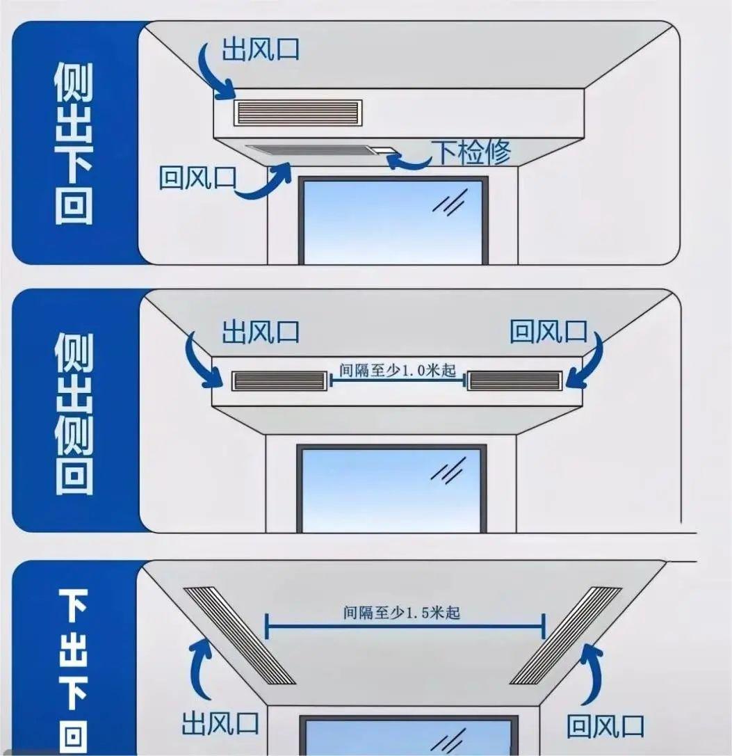 如果出風口和迴風口做在同一平面上,則至少間隔要超過1.5米。