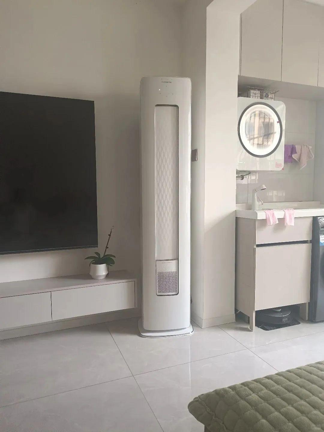 特別是客廳,與豎立式櫃機對比,省下來寸土寸金的客廳面積,這對小戶型有多重要!這半米見方的區域放加長沙發、放裝飾綠植、就算直接留白,視覺上也看着舒服!