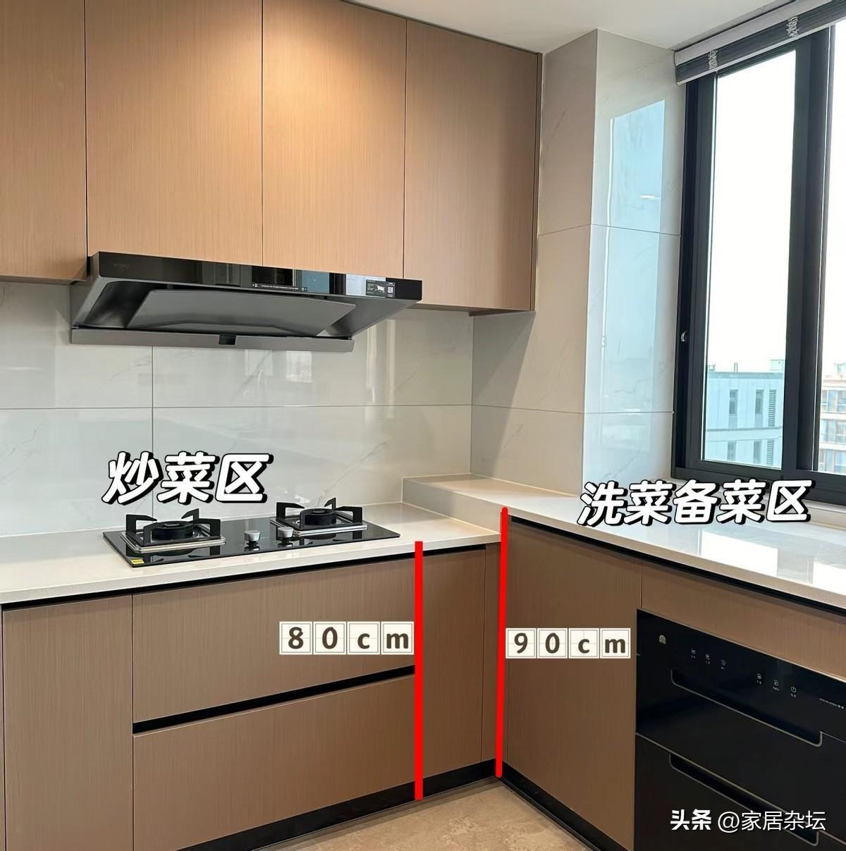 ②、設計檯面高度的時候,建議大家親自站在臺面前體驗一下,以最舒適的姿勢去確定高度,這樣效果是最好的。