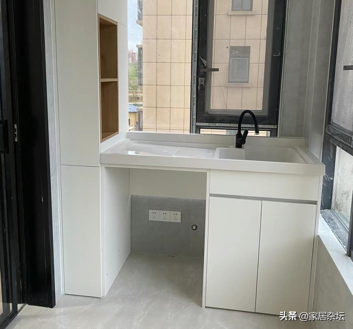 ②、做好背部的防潮。因爲洗衣機這個區域可能會返潮。所以,櫃子背部建議大家刷防水,做好防潮,避免發黴。
