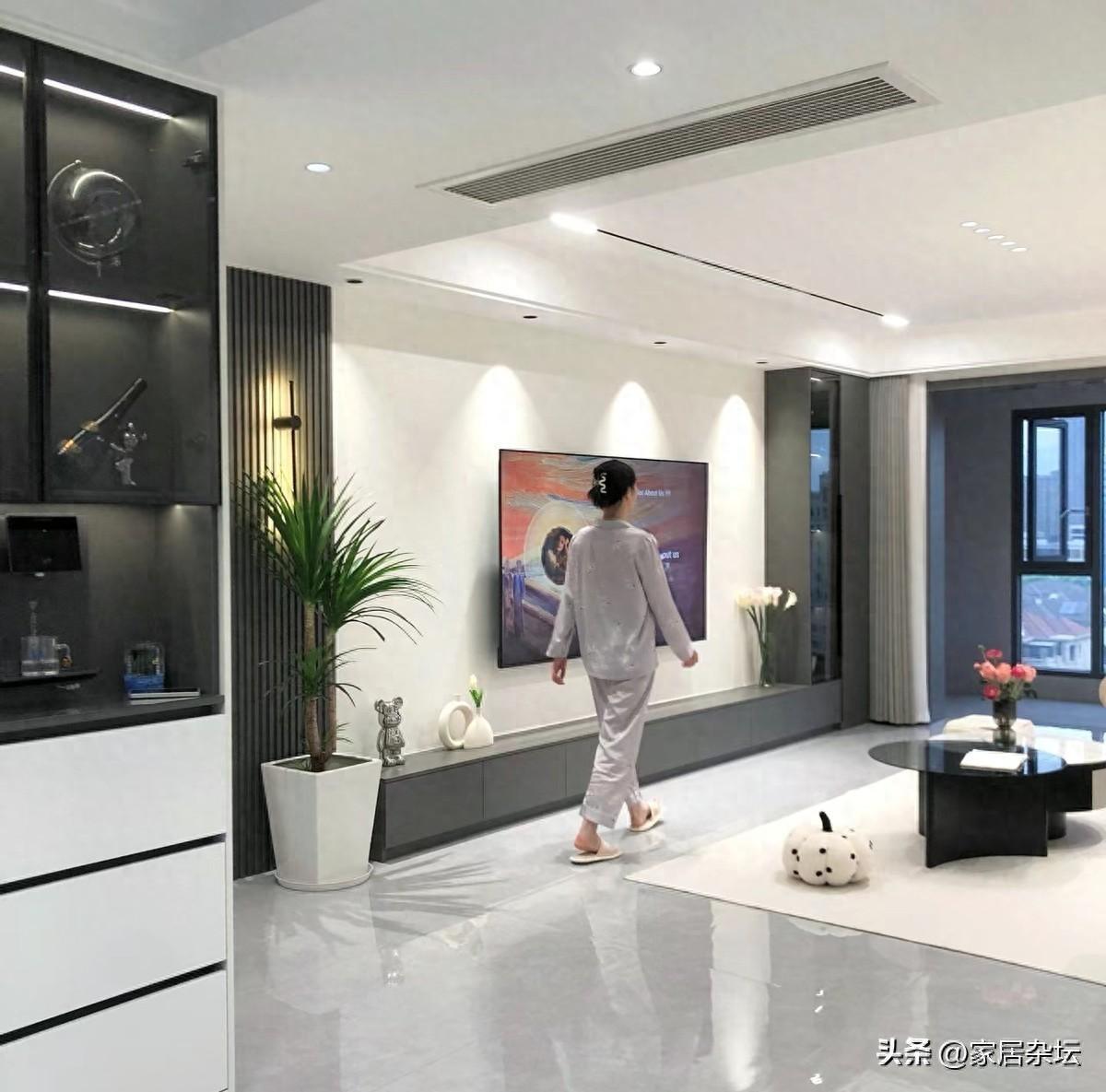①、電視牆的位置會非常的整齊。任何的電線都藏在電視櫃和管子裏,沒有任何的外漏,非常好看。