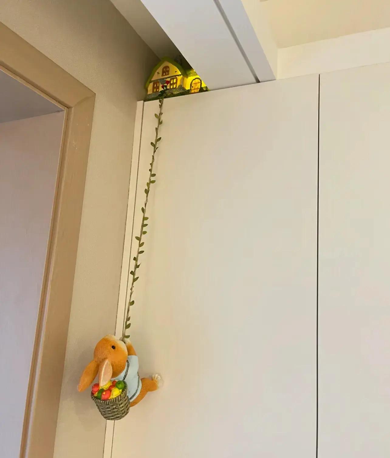 這時給死角處放一個小屋,底下吊一隻正在攀爬回家的小兔子。裝修bug立馬被消解掉了,還給家裏增添了一絲趣味性。