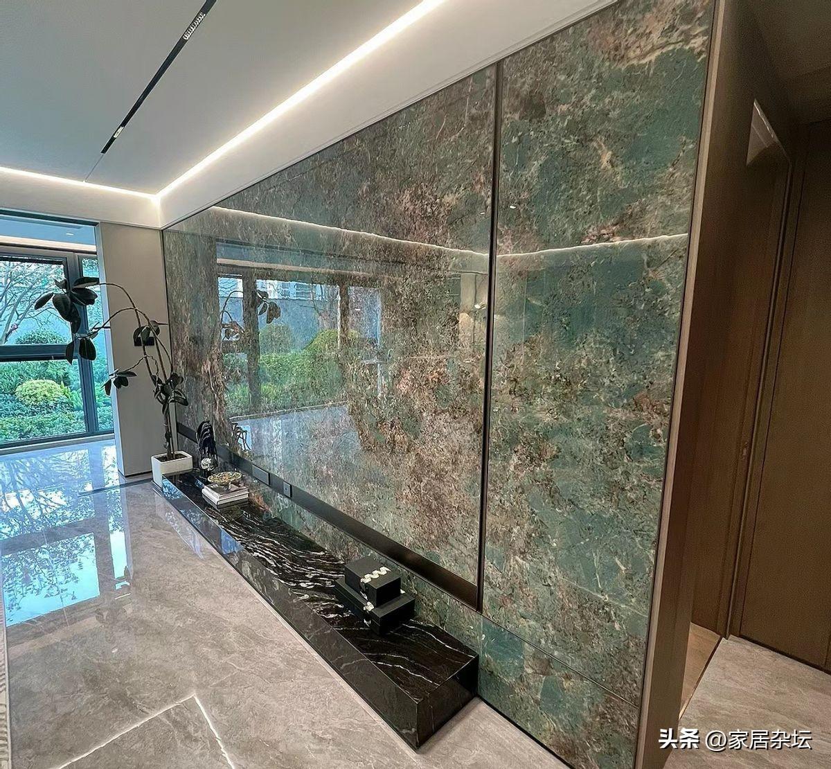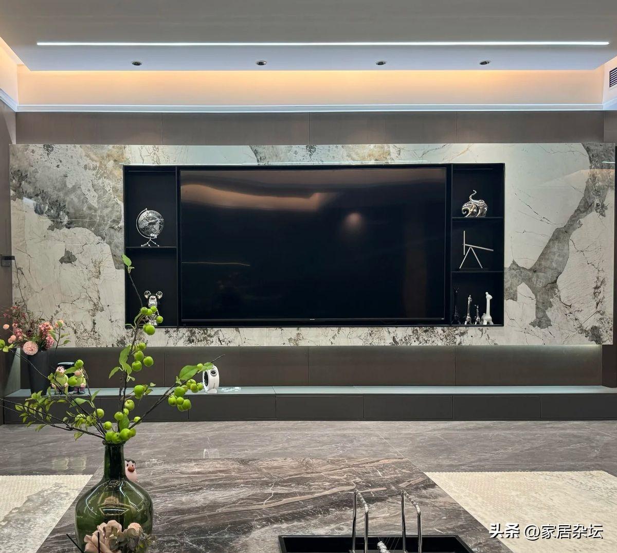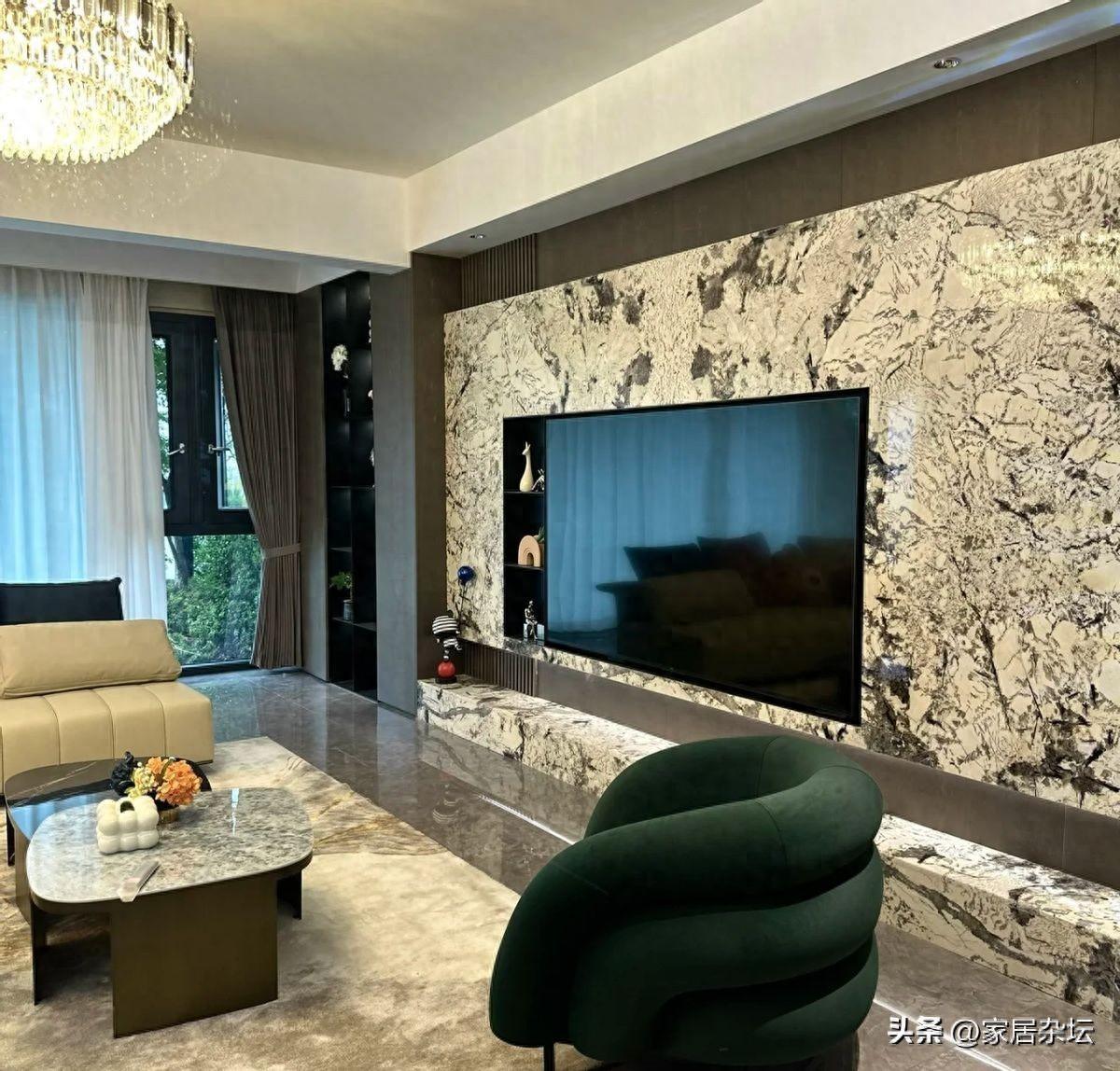 比較傳統的電視背景牆,還是以石材爲主,特別是天然大理石的電視背景牆。