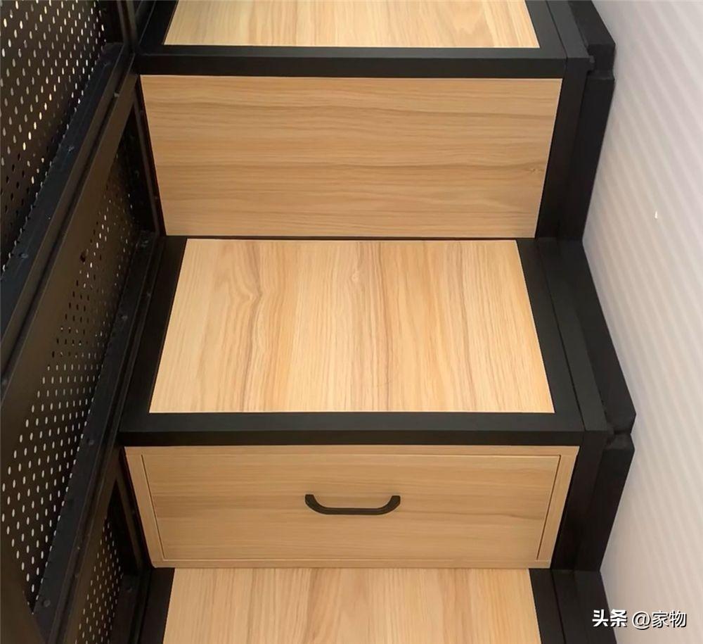 無論是正面還是側面,都做了大大小小的收納抽屜,裏面可以收納一些雜物,同時也保證走到上鋪的階梯更加平緩,晚上若在這裏睡覺,上下樓梯都要安全一些。